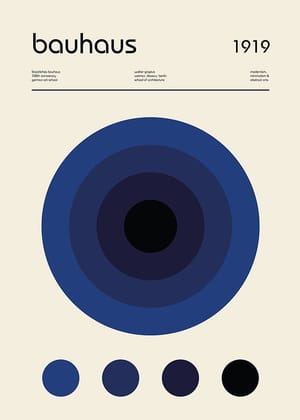 The art wall catches the eye with its bold lines and harmonious curves, where the stylish black and white poster is complemented by a blue artwork filled with visual depth and expression. The combination of geometric shapes and colors from Bauhaus creates a sophisticated and modern expression, lifting the atmosphere of the room and inviting a balance between art and elegance.