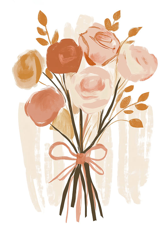 This poster captures the sight of soft, hand-painted roses in warm pastel tones. The sheer leaves and elegant placement create a sense of timeless romance that permeates the room.