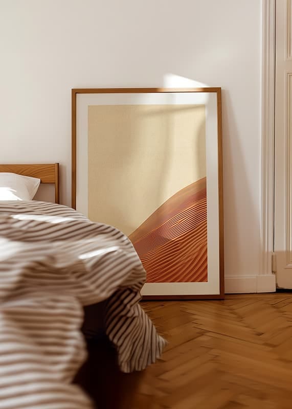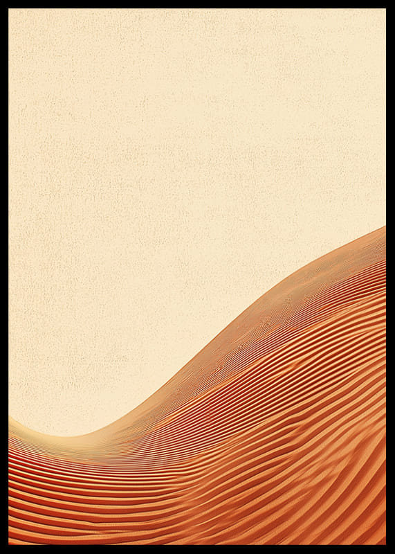 This poster catches the eye with its soft waves of sand that evoke a sense of tranquility and harmony. The undulating shapes in warm sand tones against a light background create a timeless and elegant aesthetic.