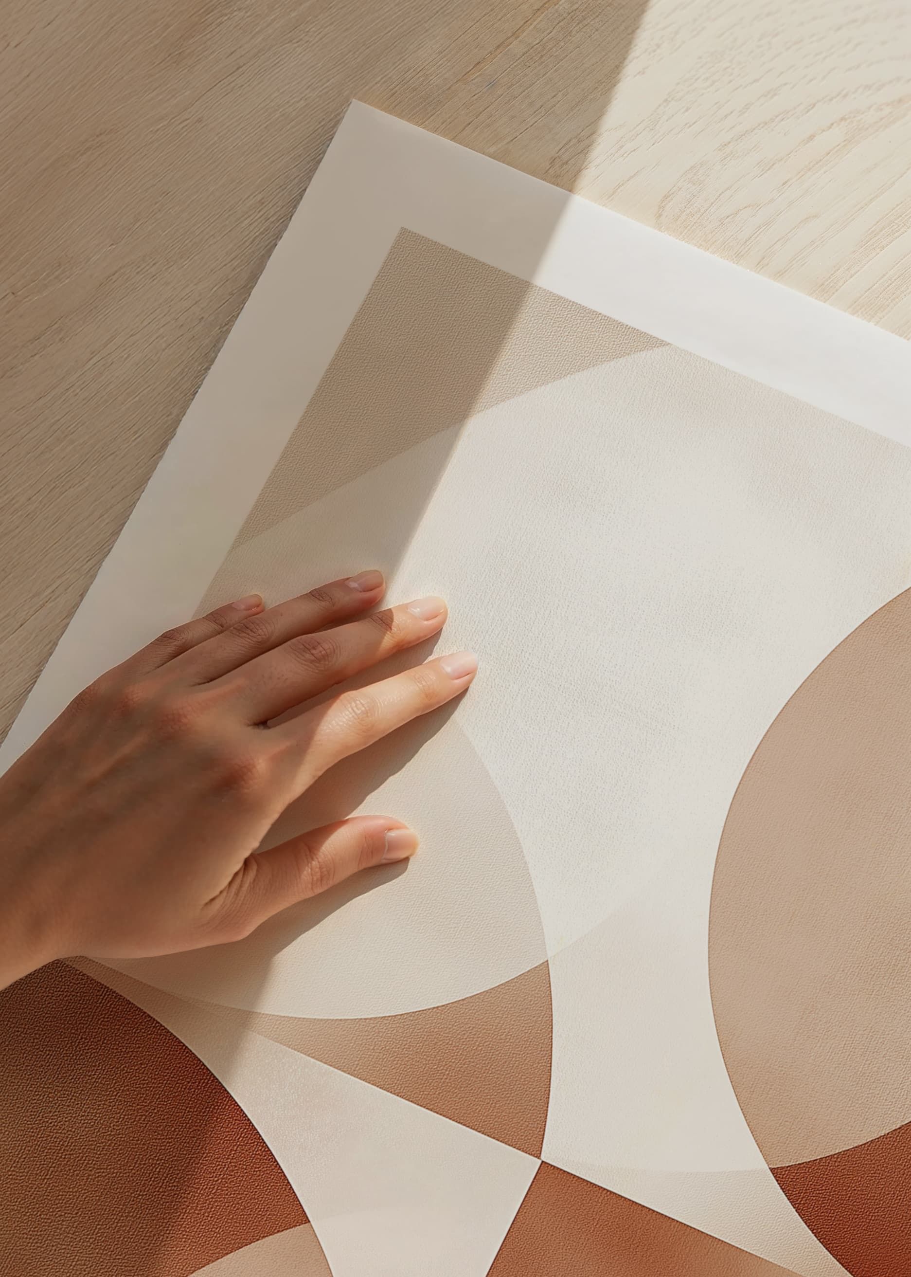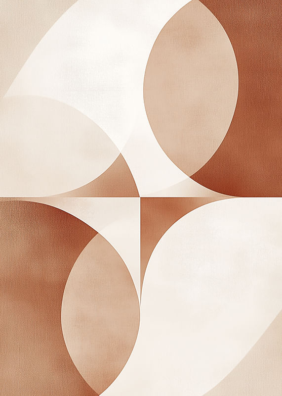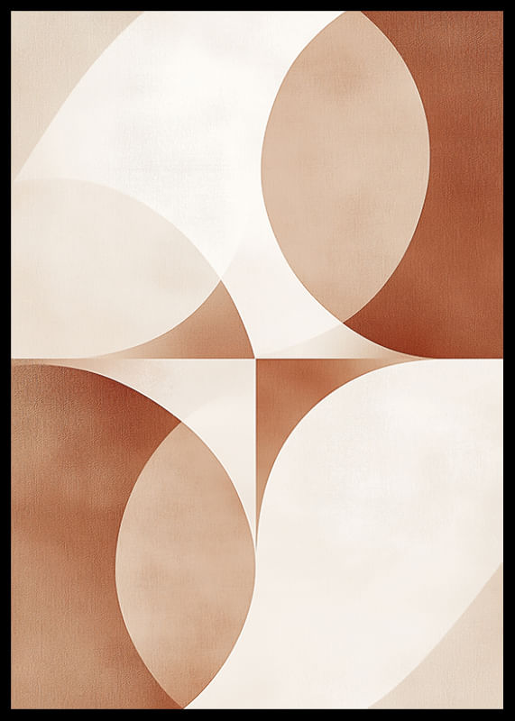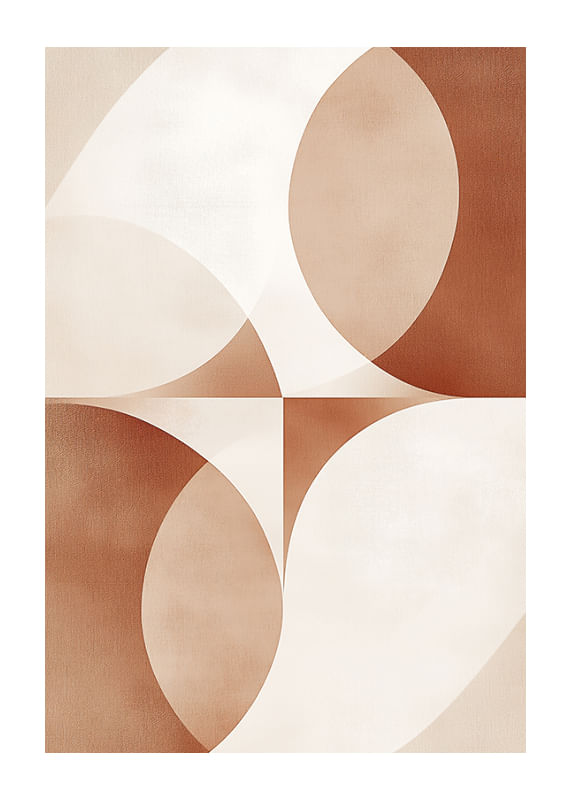 This poster catches the eye with its soft, overlapping curves in earthy tones. The warm brown and creamy hues form an abstract composition that exudes elegance and calm.