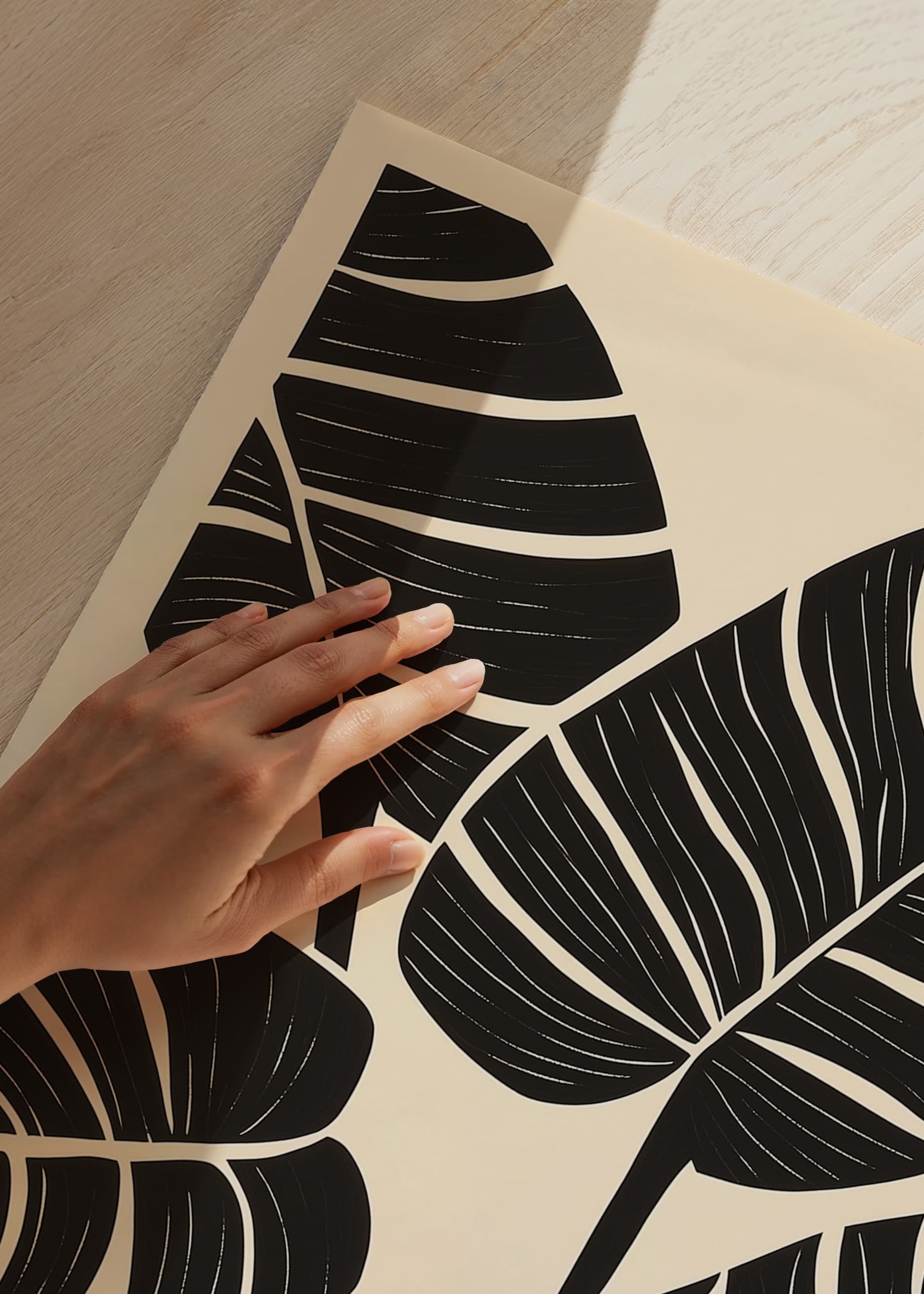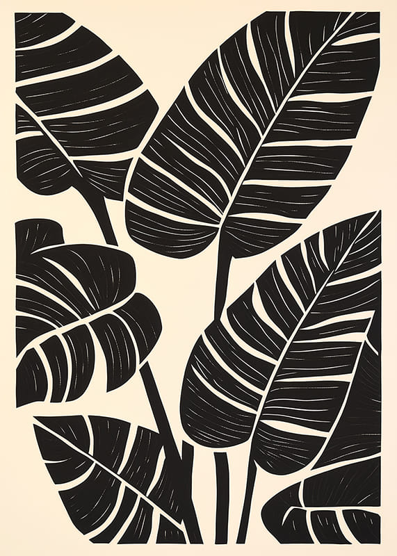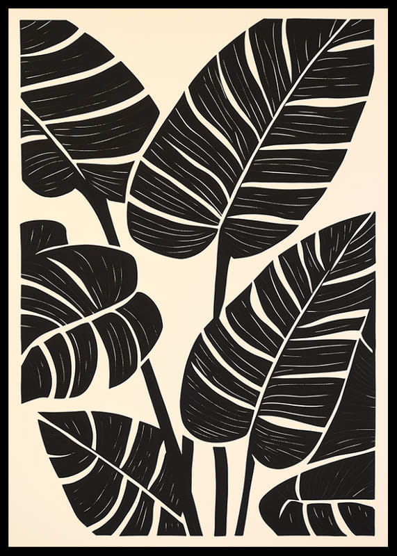 This poster captures attention with its sleek, black banana leaves against a soft beige background. The minimalist design creates a sense of calm and elegance, making it perfect for bringing a bit of natural beauty into any home.