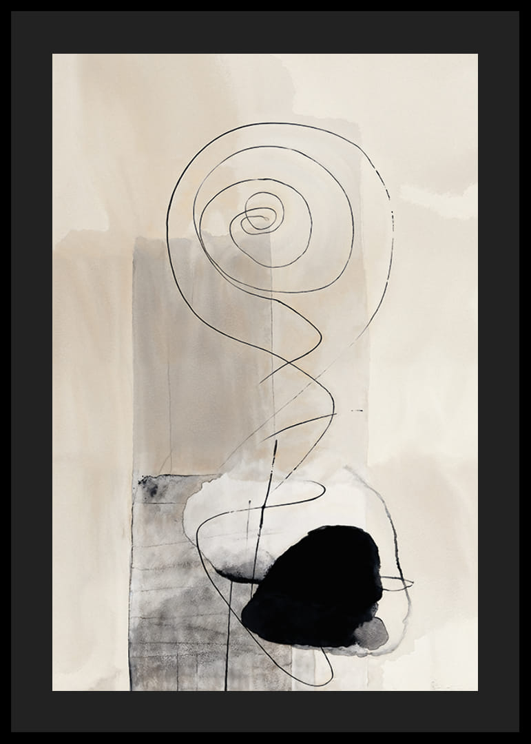 This poster captures a subtle spiral that floats endlessly over a dreamy backdrop of soft, earthy tones. The dance of lines creates a sense of calm and infinity, where abstract shapes merge together.