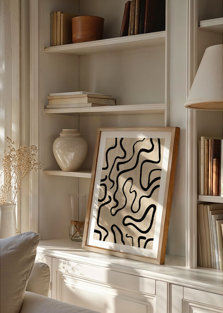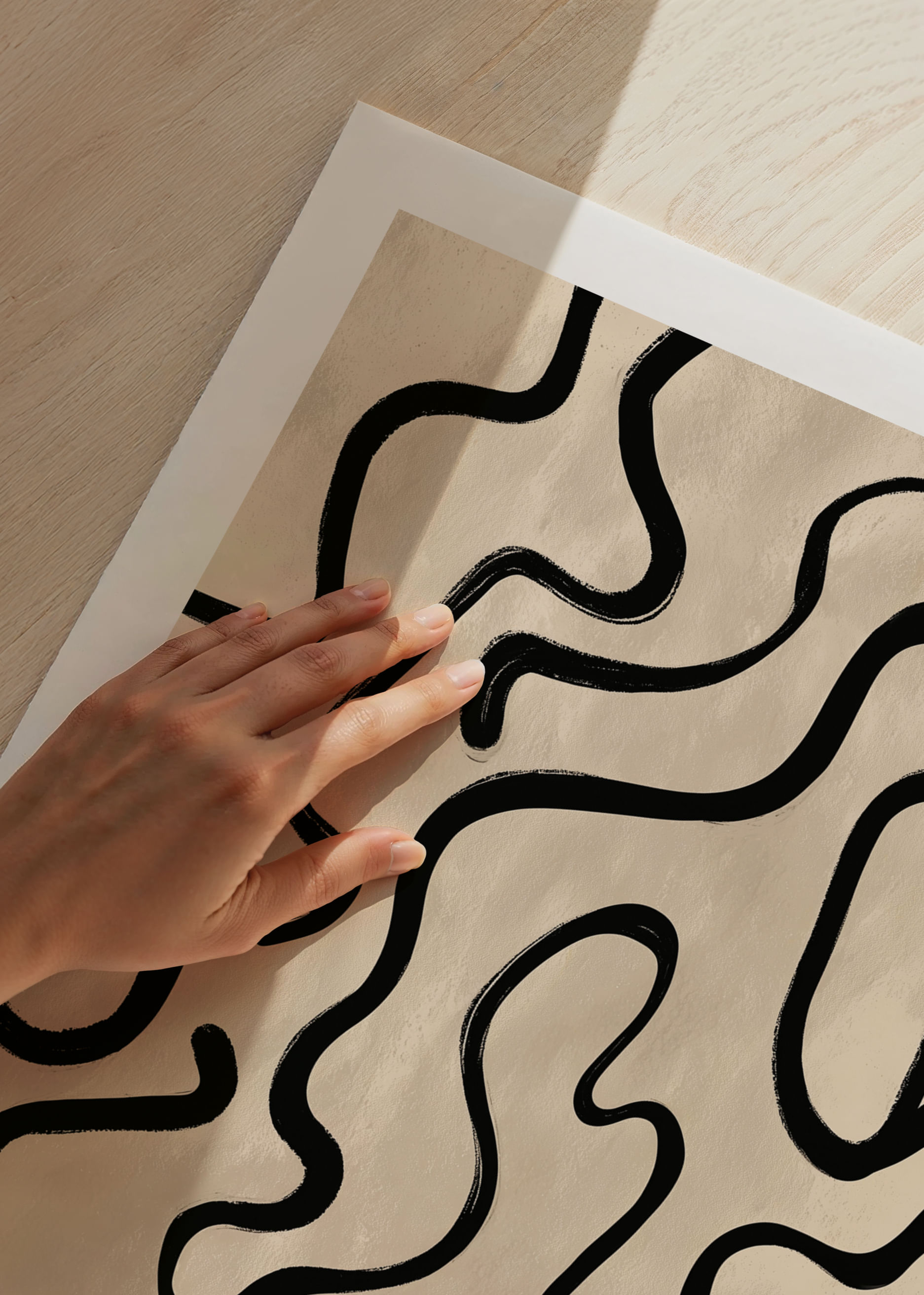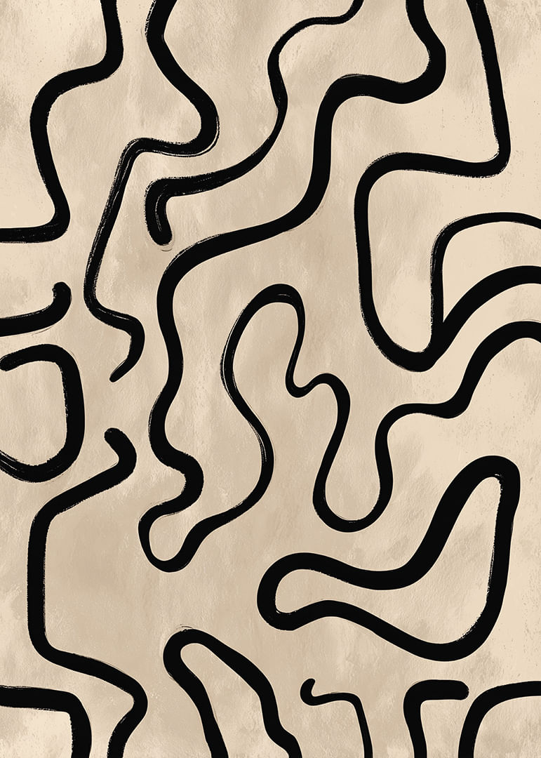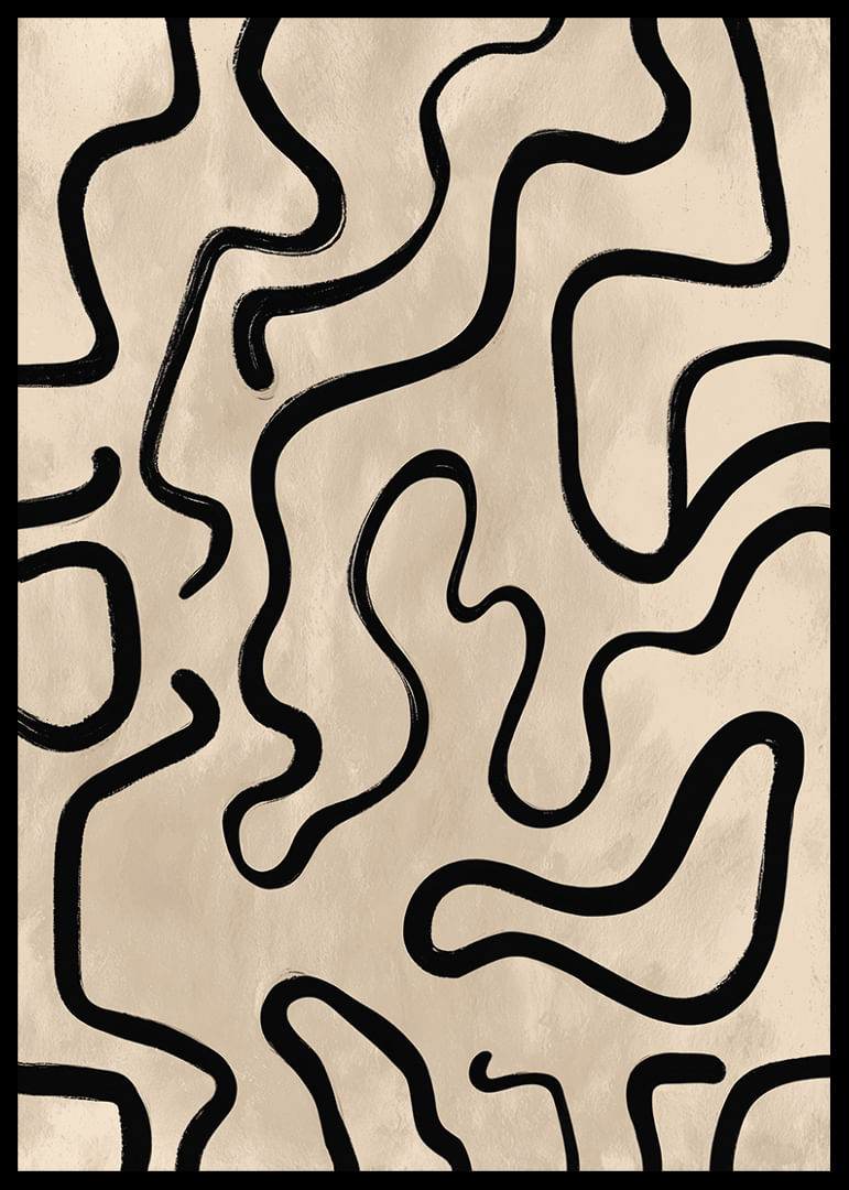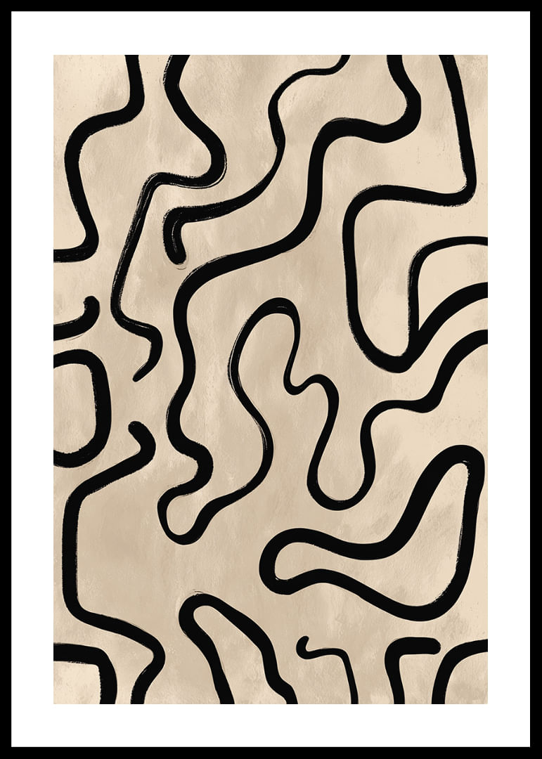 This artwork catches the eye with its intricate, winding lines that form a dynamic pattern. The poster gives a sense of mystery and movement that permeates the room with a modern elegance. The black lines against a beige background create a harmonious contrast that enhances the style of the home decor. The poster becomes a focal point that both calms and inspires the viewer with its timeless design.