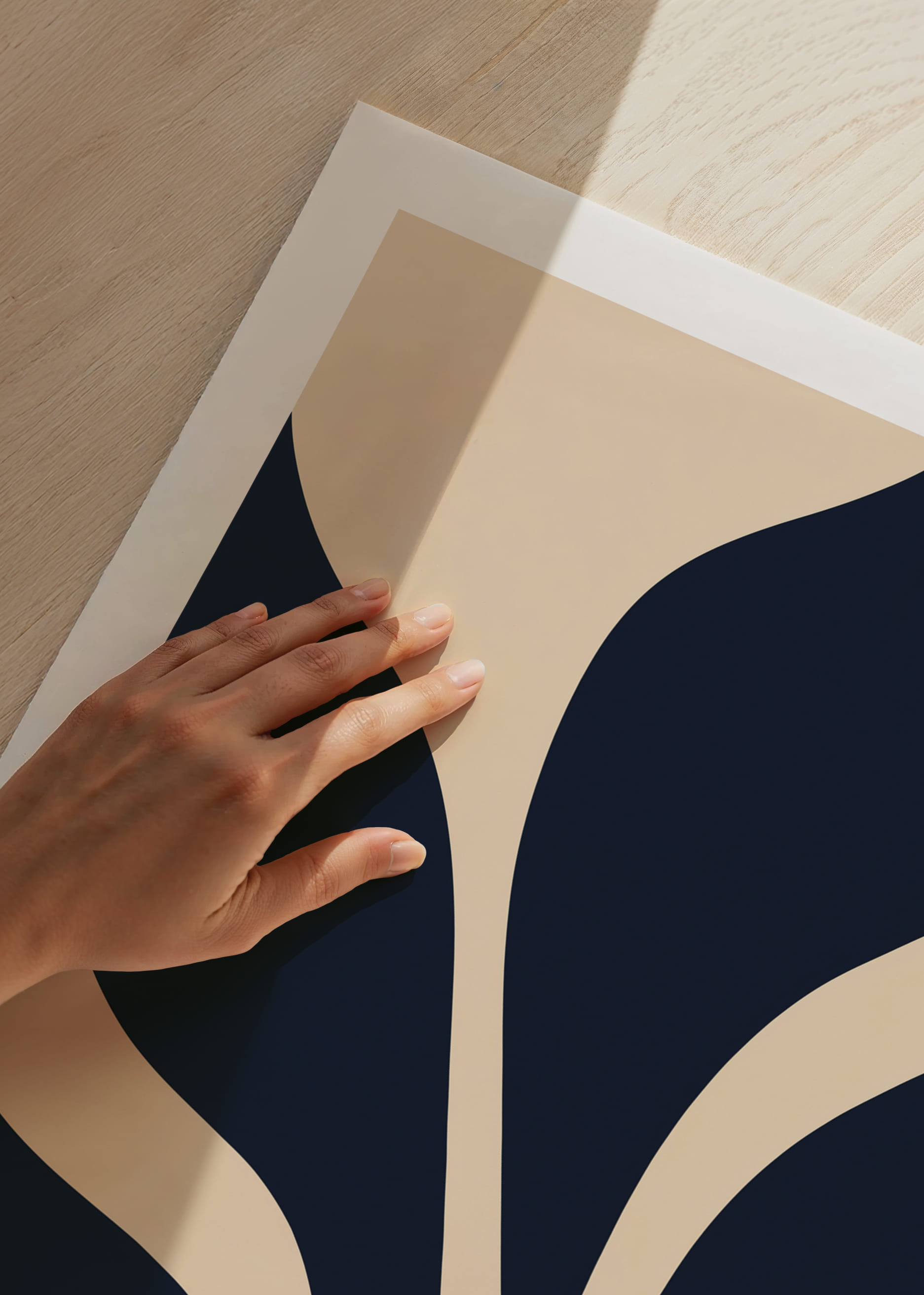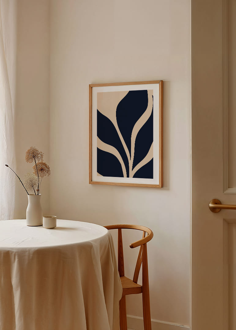This poster captures the attention with its soft, undulating shapes against a deep, dark background. The elegant lines create a sense of movement and stillness at the same time, arousing both curiosity and harmony. The poster will become an elegant centerpiece in any room and contribute to a sophisticated and calming atmosphere in your home.
