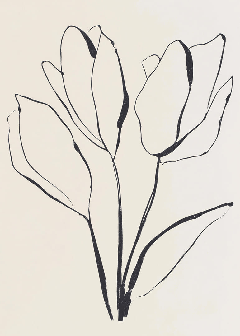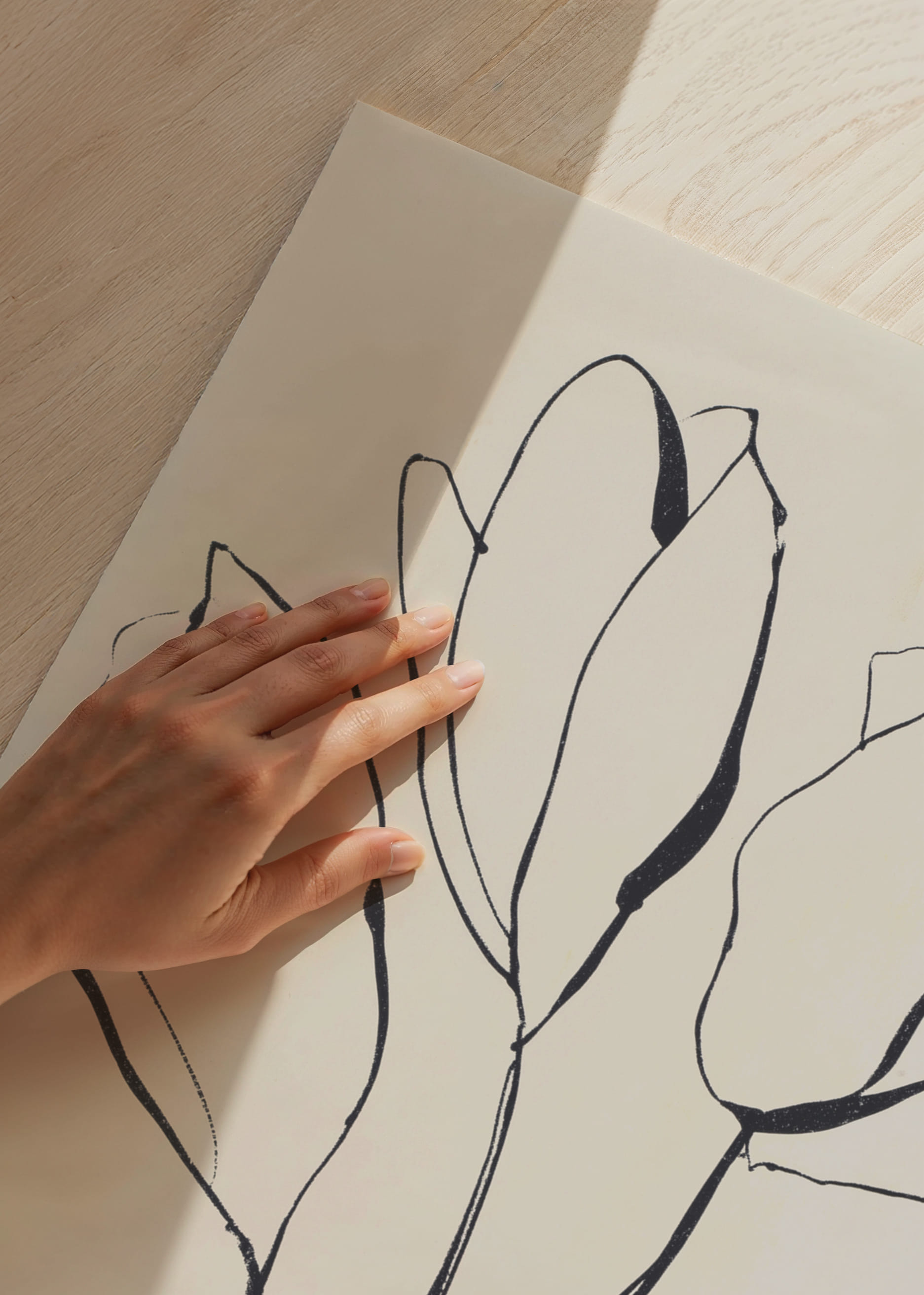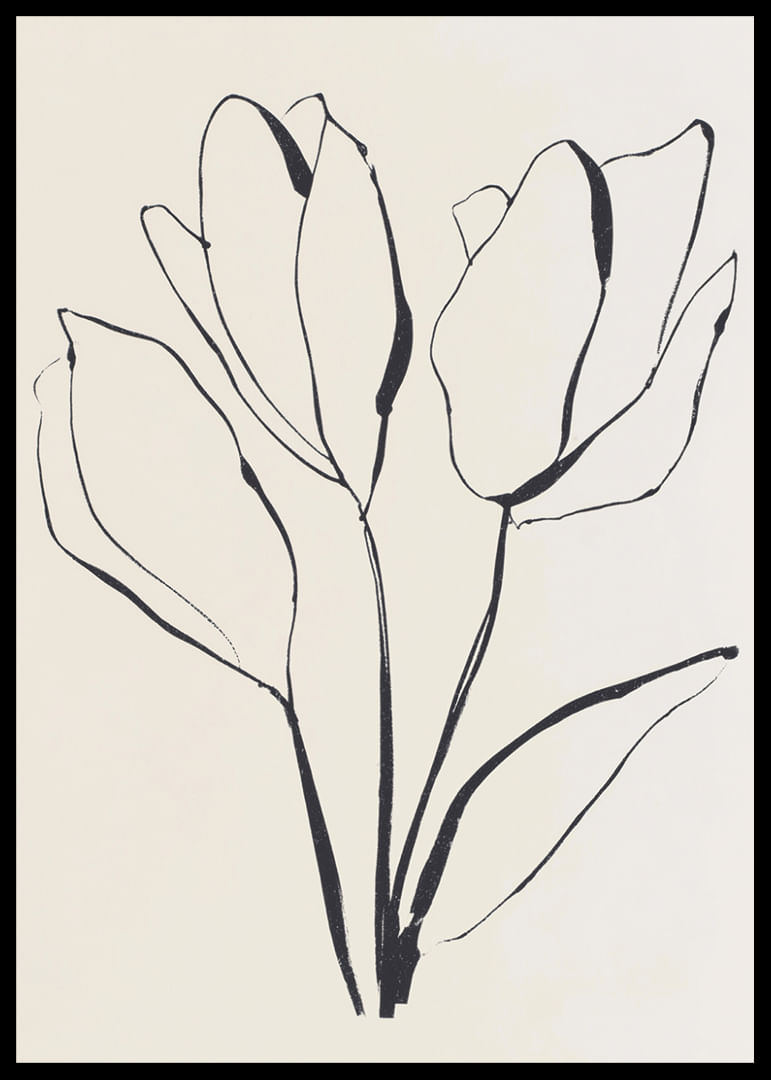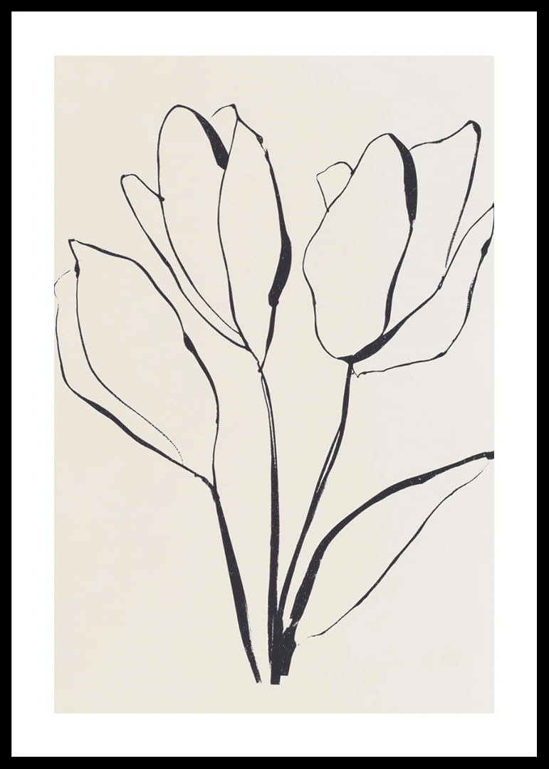 This poster catches the eye with its clean black lines depicting a simple yet elegant floral silhouette. The minimalist expression gives a sense of calm and balance. The shape of the flowers creates a subtle beauty that brings life to any room. Perfect for creating a sophisticated and peaceful atmosphere in your home, this poster will become a timeless decoration on the wall.