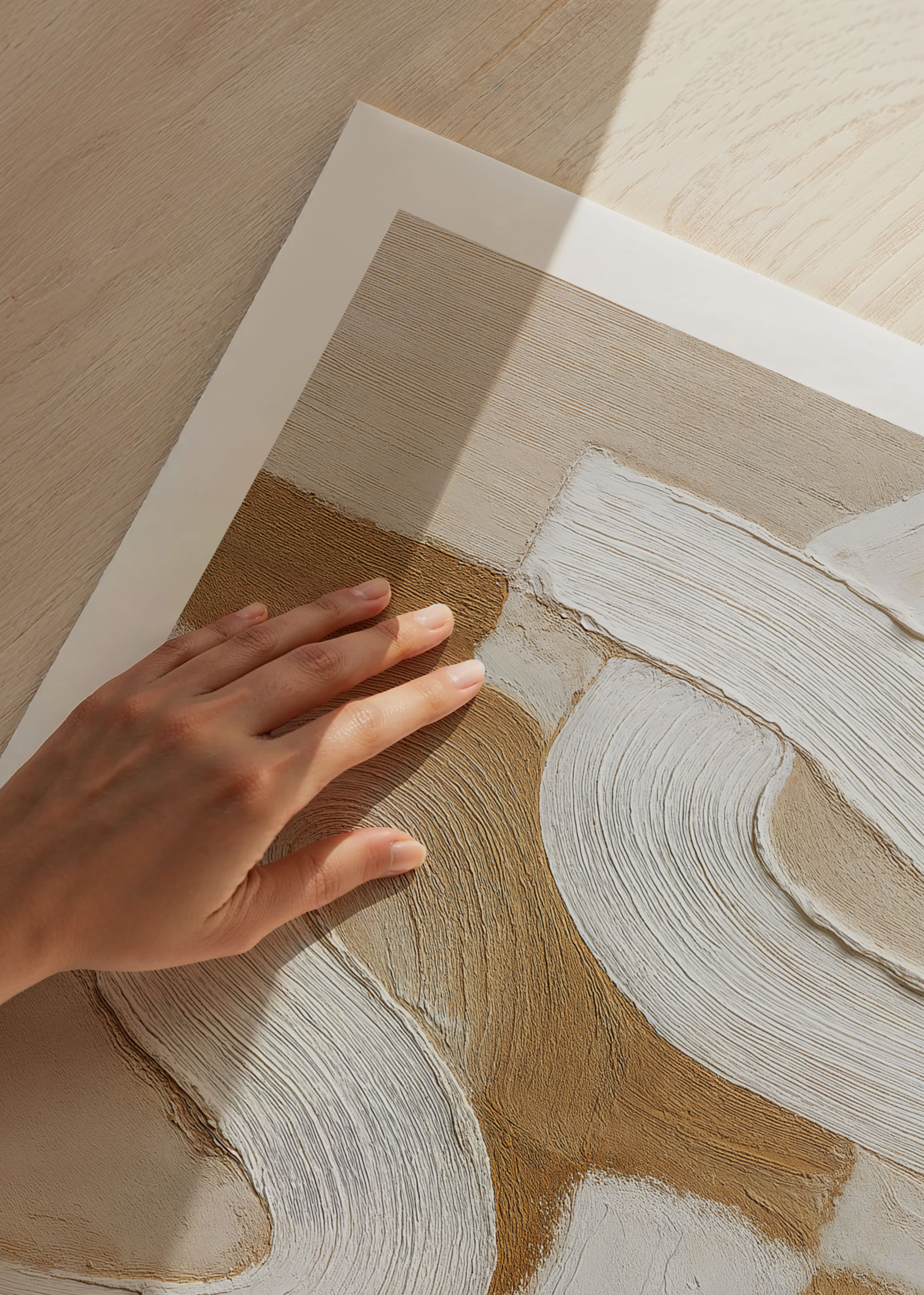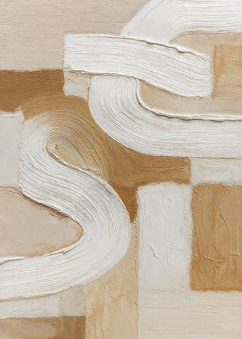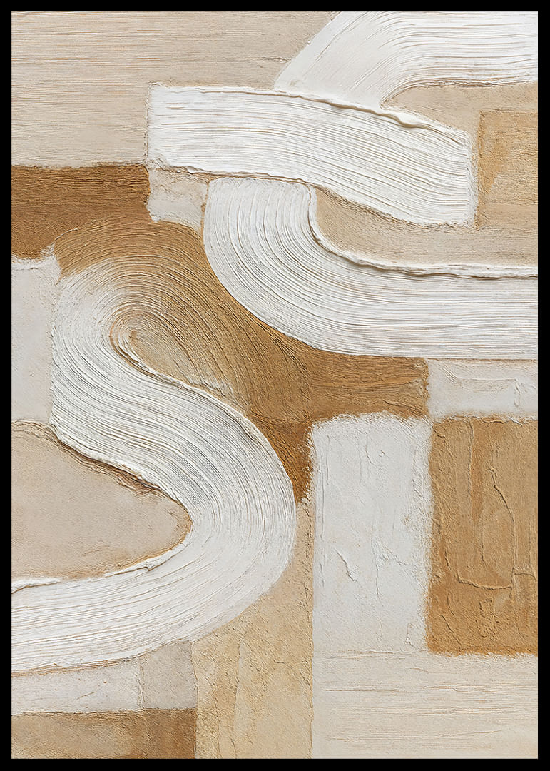 With soft brushstrokes in earthy tones and sweeping white lines, this poster captures a sense of calm and harmony. The warm tones and subtly textured surface exude an earthy aesthetic that fits perfectly in both modern and traditional interiors. This poster easily transforms a room into a harmonious sanctuary with its calming and balancing elements.