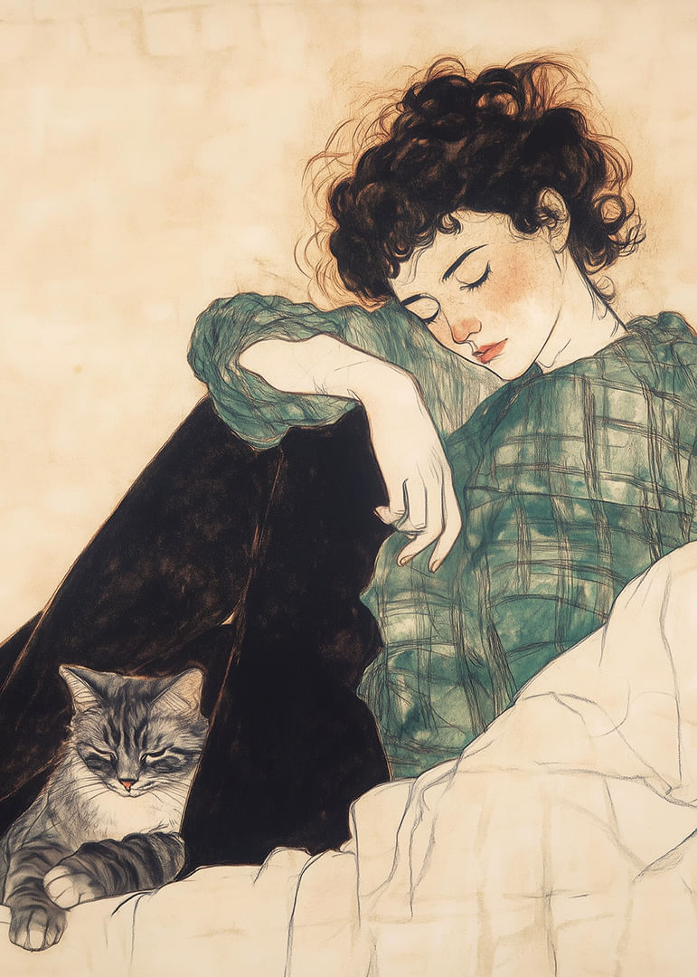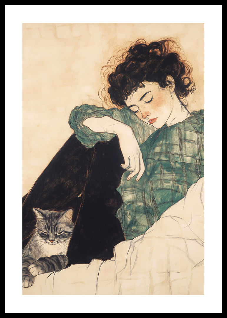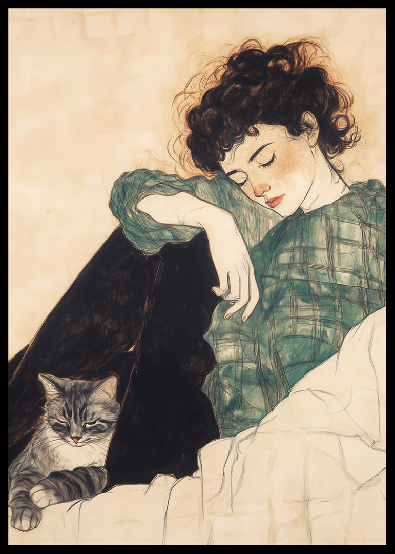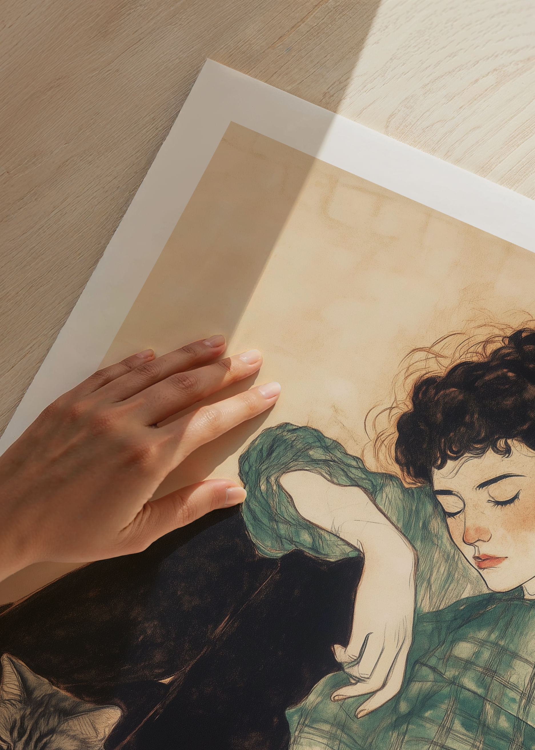 This atmospheric poster captures a moment of intimate closeness between a girl and her faithful cat. Surrounded by a soft, dreamy atmosphere and muted color tones, the motif conveys a sense of security, calm and quiet togetherness. With its soft lines and warm expression, the poster will be a beautiful feature in any room where you want to create peace, warmth and a sense of home. Perfect for bedrooms, children's rooms or reading corners - a visual reminder of the little moments that matter most.