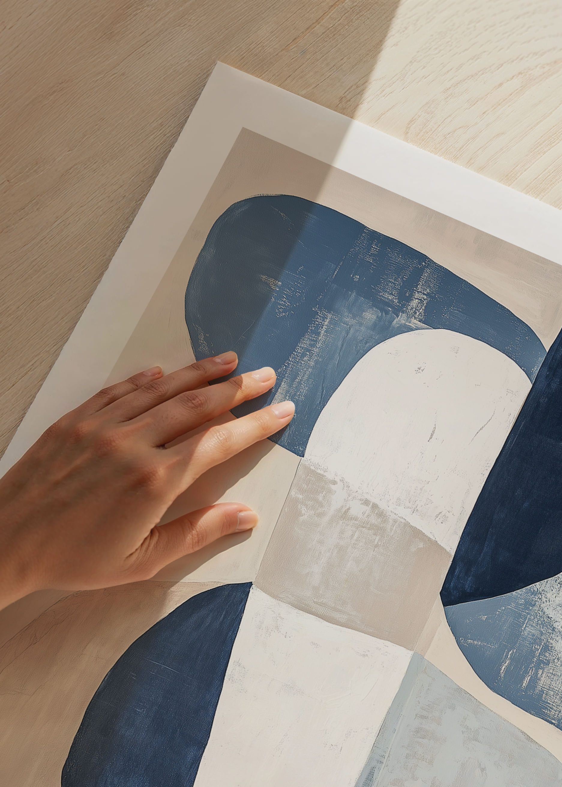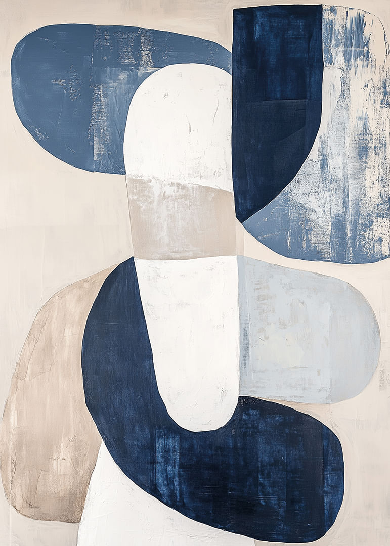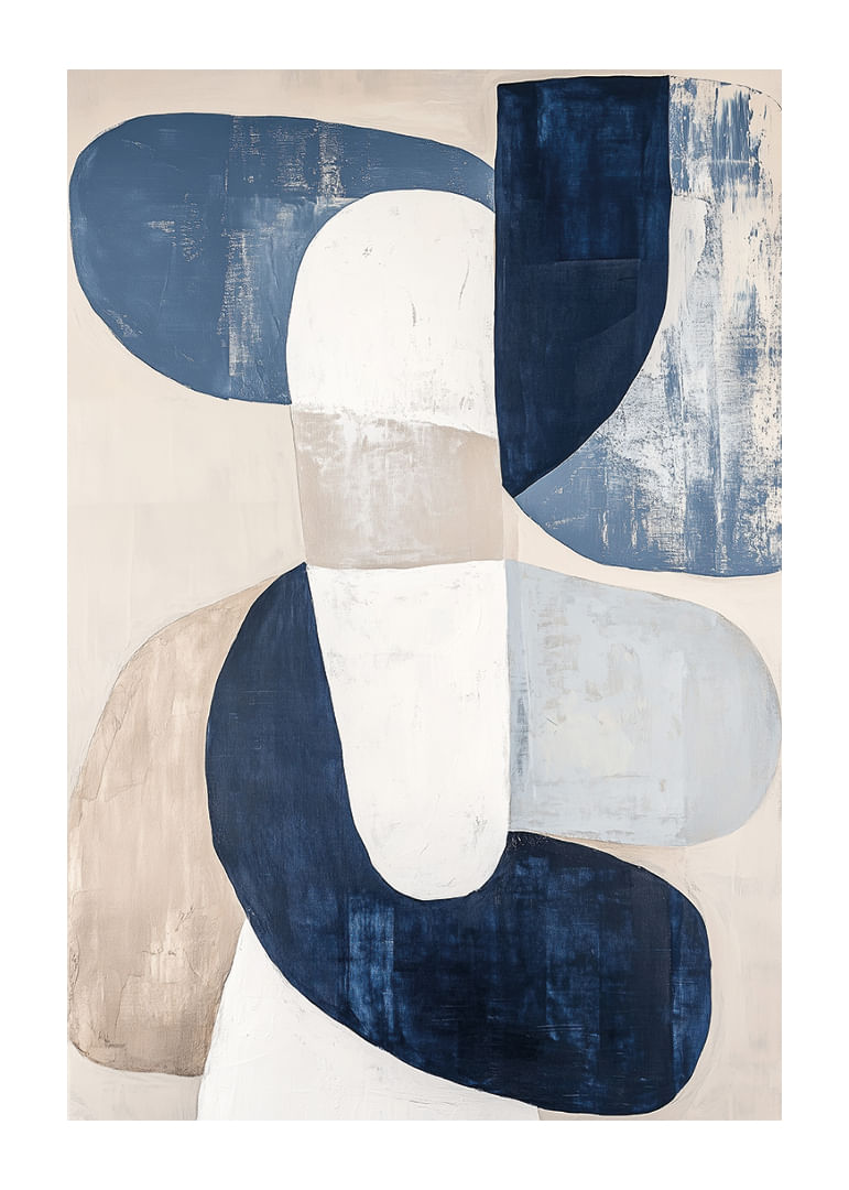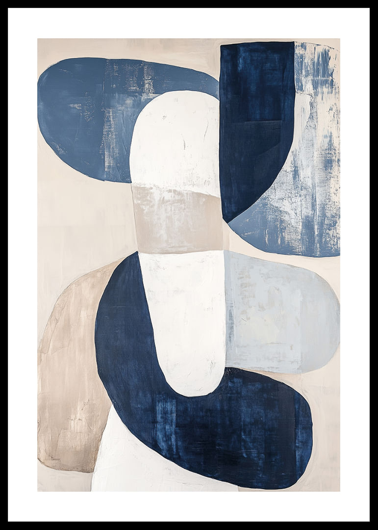 This poster catches the eye with its soft, interconnected shapes in a harmonious blend of muted blue and beige tones. With a relaxing and inviting expression, the poster exudes a sense of calm and balance that transforms any room into a haven of tranquility. The subtle elegance and artistic simplicity mean that this poster will seamlessly enhance the atmosphere of your living room or office.