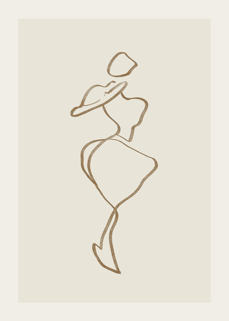 This poster immediately catches the eye with its elegant line art of a stylish figure. The flow of the lines creates a sense of movement and grace, giving a sophisticated atmosphere to the room. Minimalist and timeless, this poster acts as a perfect accent in any modern home, adding both charm and style. Its presence elevates everyday life with artistic elegance