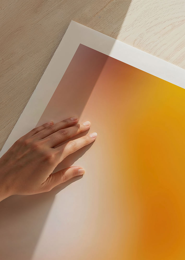 This poster captures a hypnotic world of golden hues that envelop the room in a warm embrace. The soft transitions between the colors create a calm yet dynamic atmosphere. The poster conveys a sense of tranquility and illuminates any space with a radiant energy that inspires and uplifts. This artwork will quickly become a focal point that enriches and elevates the atmosphere of your home