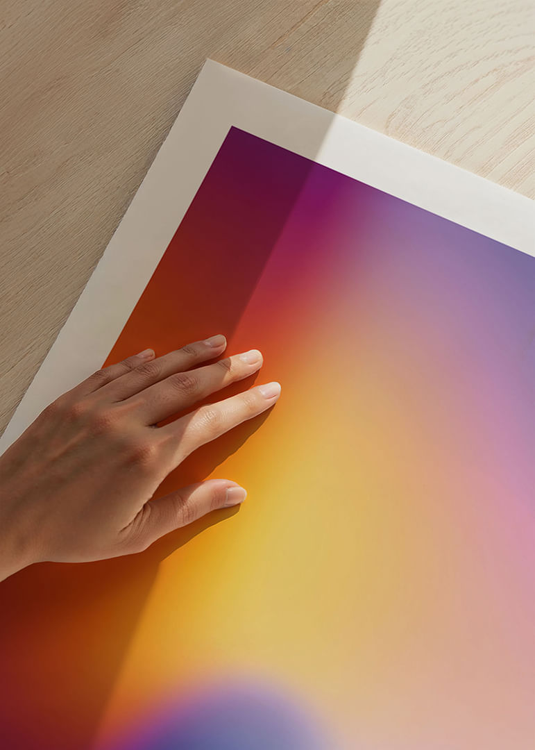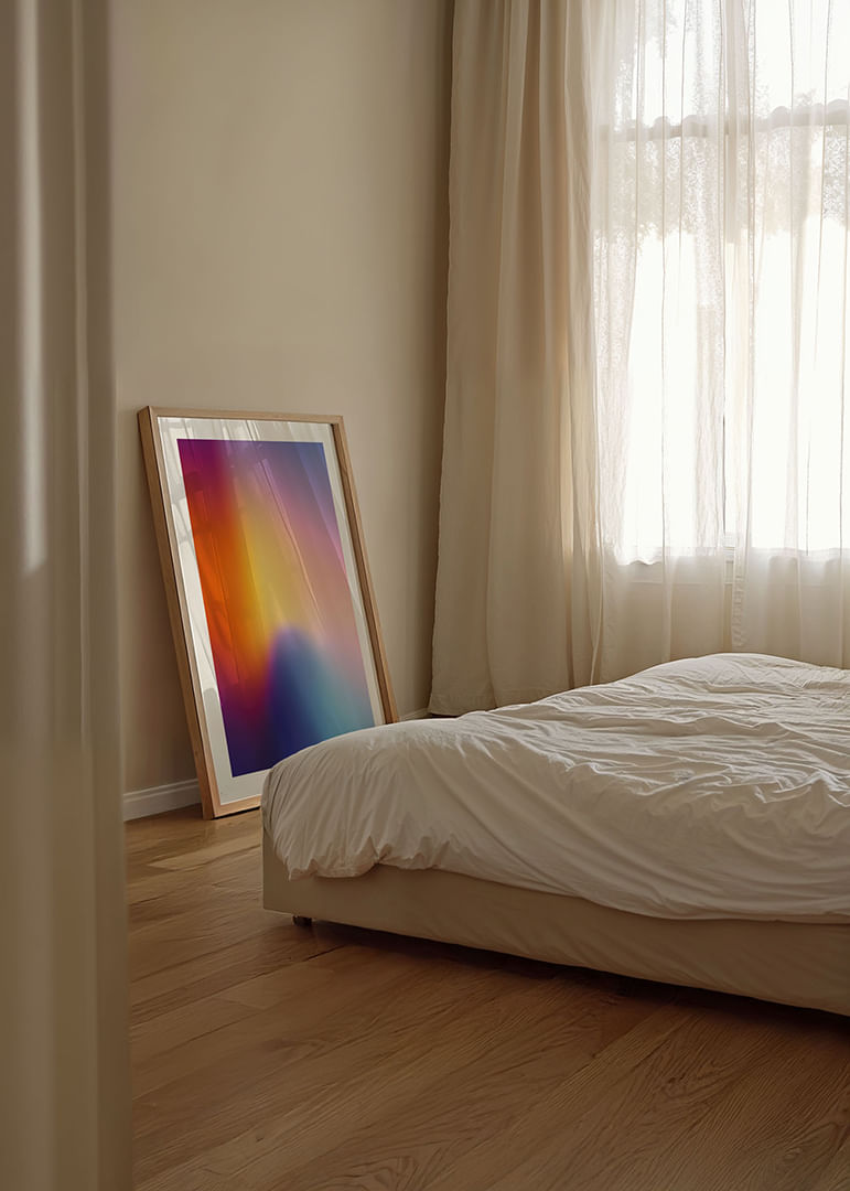 This poster exudes an ethereal beauty where soft color transitions capture the magic of the sunset. Its warm orange and deep blue create an atmosphere of calm and reflection. The color combinations give a sense of endless possibilities, and it fits perfectly as an atmospheric detail in your living room. The poster transforms the room into a place of soothing harmony and inspiring beauty