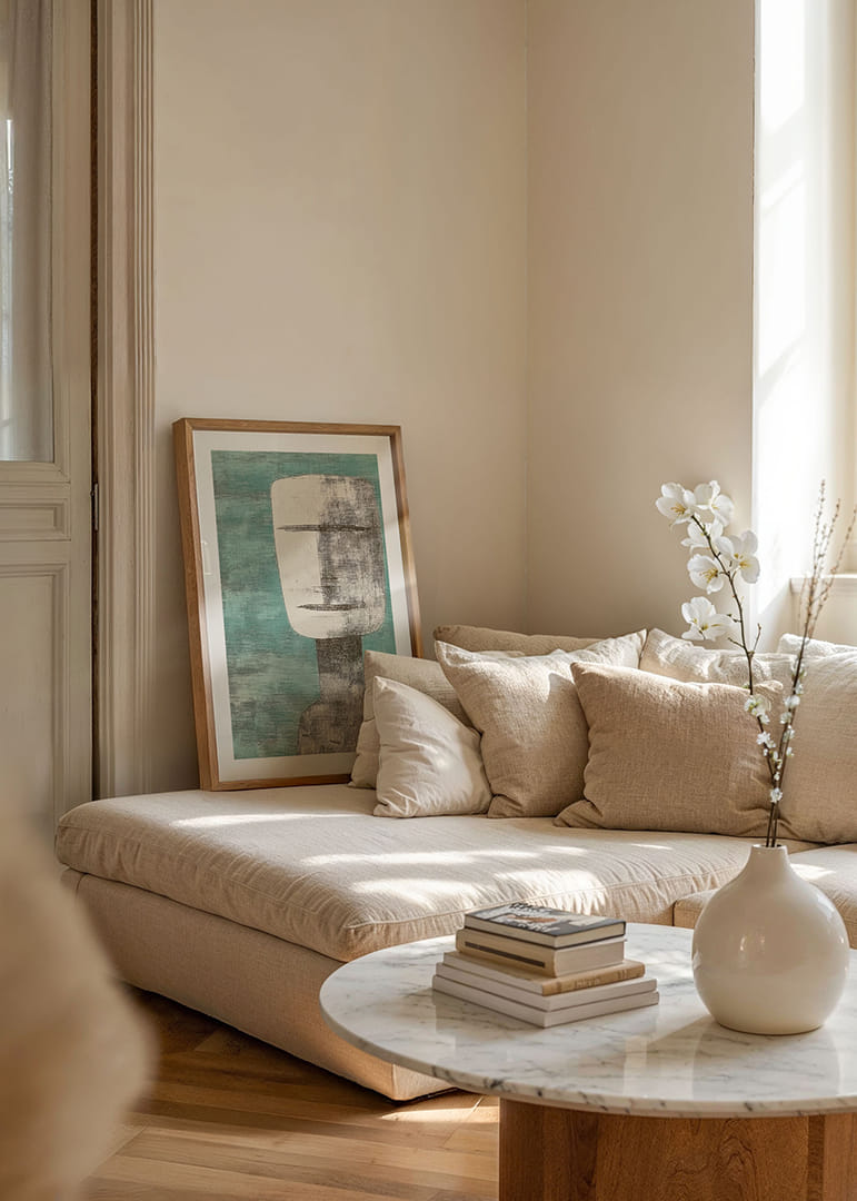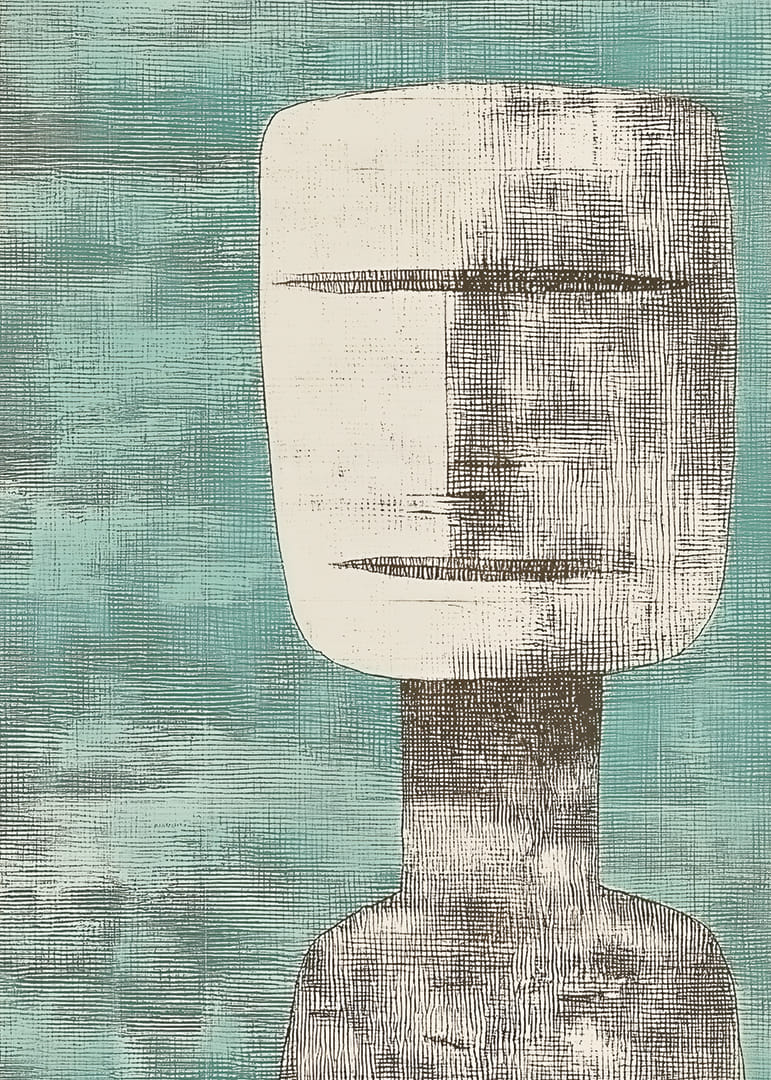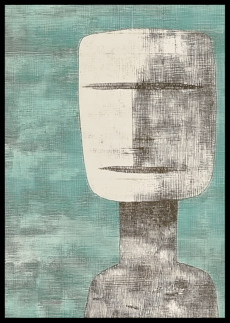 This poster features a serene figure drawn in abstract lines against a muted, soft background. Its minimalist and artistic style highlights a sense of introspection and calm. The poster creates a harmonious balance between form and color, adding a subtle elegance to any room. Perfect for adding a sense of quiet contemplation to a modern interior