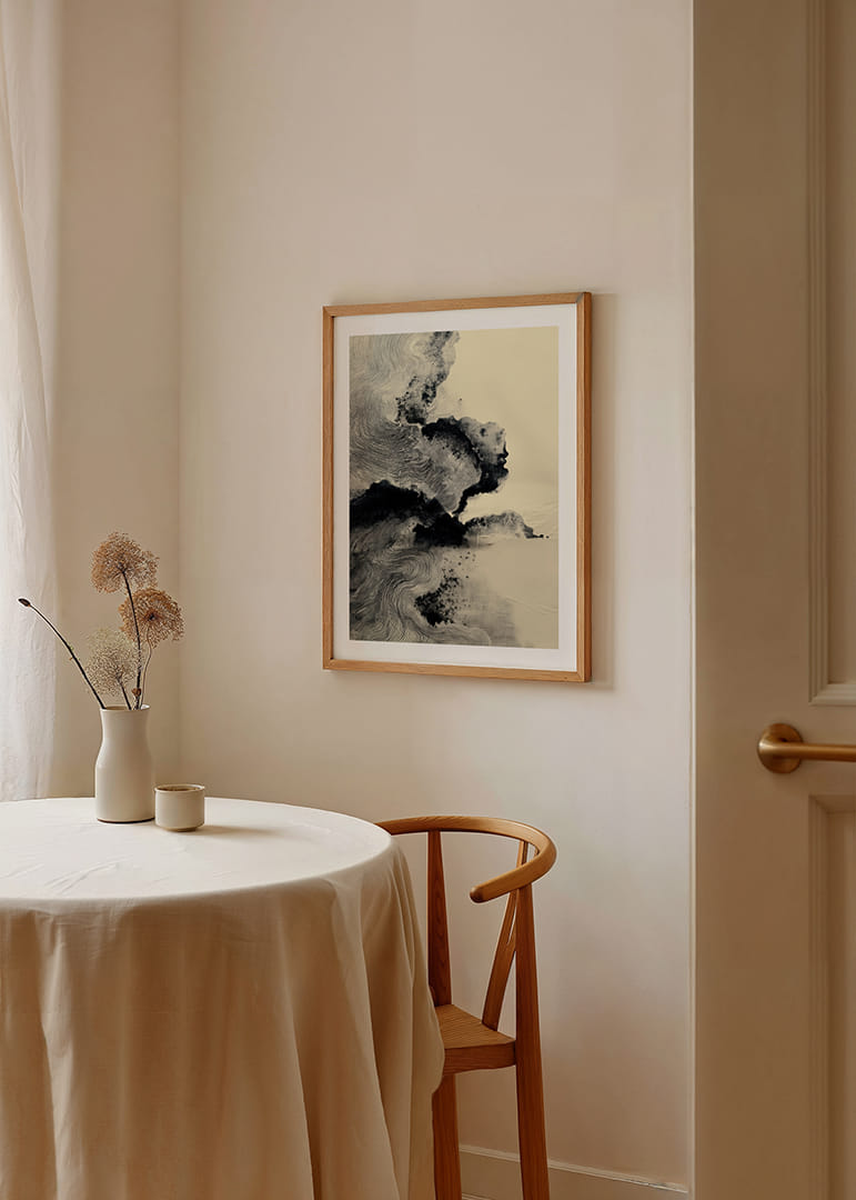 This poster catches the eye with its dreamy and organic ink patterns that dance across the surface. The subtle shadows and soft, contrasting tones create a peaceful and mysterious atmosphere. It is the perfect poster to enrich a room with a sense of calm and creativity. Its presence transforms an ordinary wall into a gateway for inspiration and dreams