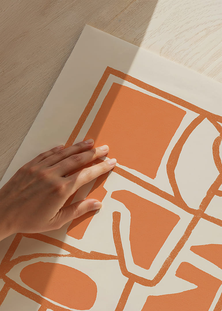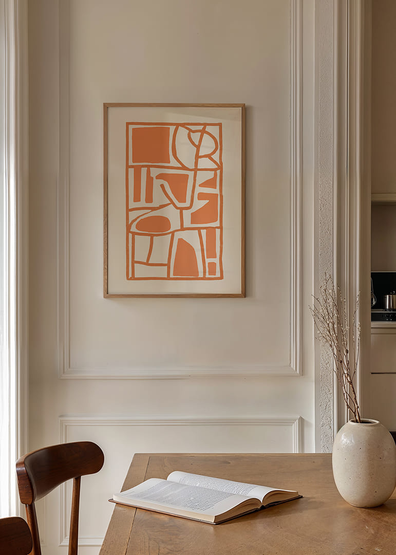 Let yourself be enchanted by this poster where warmth radiates through a glowing pattern of soft geometric shapes. The muted orange tones create a harmonious balance that awakens a sense of calm and creativity in the room. This poster will immediately become an eye-catcher that enhances the atmosphere of your home and adds a sophisticated touch to any wall it adorns