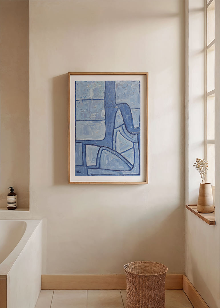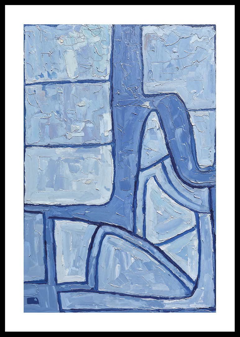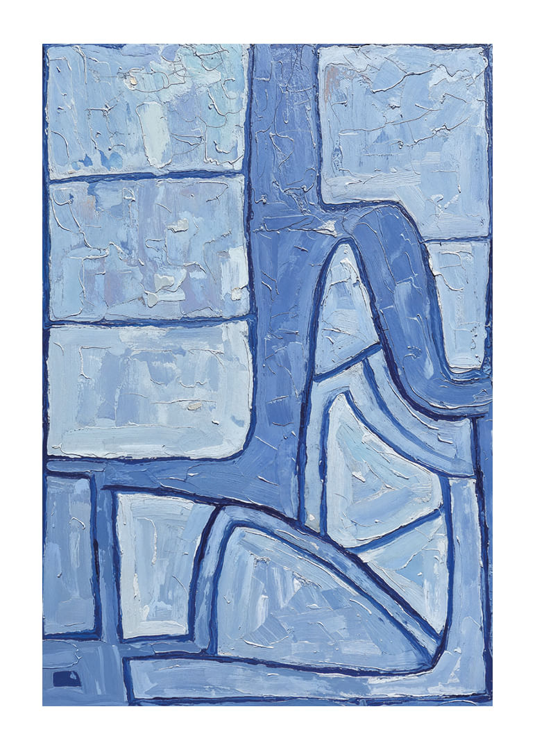 This poster catches your eye with its harmonious blend of blue hues dancing in an abstract pattern. It evokes a sense of peace and tranquility, embracing the room with a subtle elegance. The soft, flowing lines create a dreamlike feel, making the poster an ideal centerpiece for your living room. Let it bring an atmosphere of calm and balance to your home