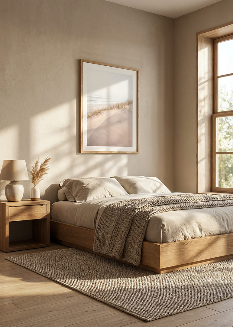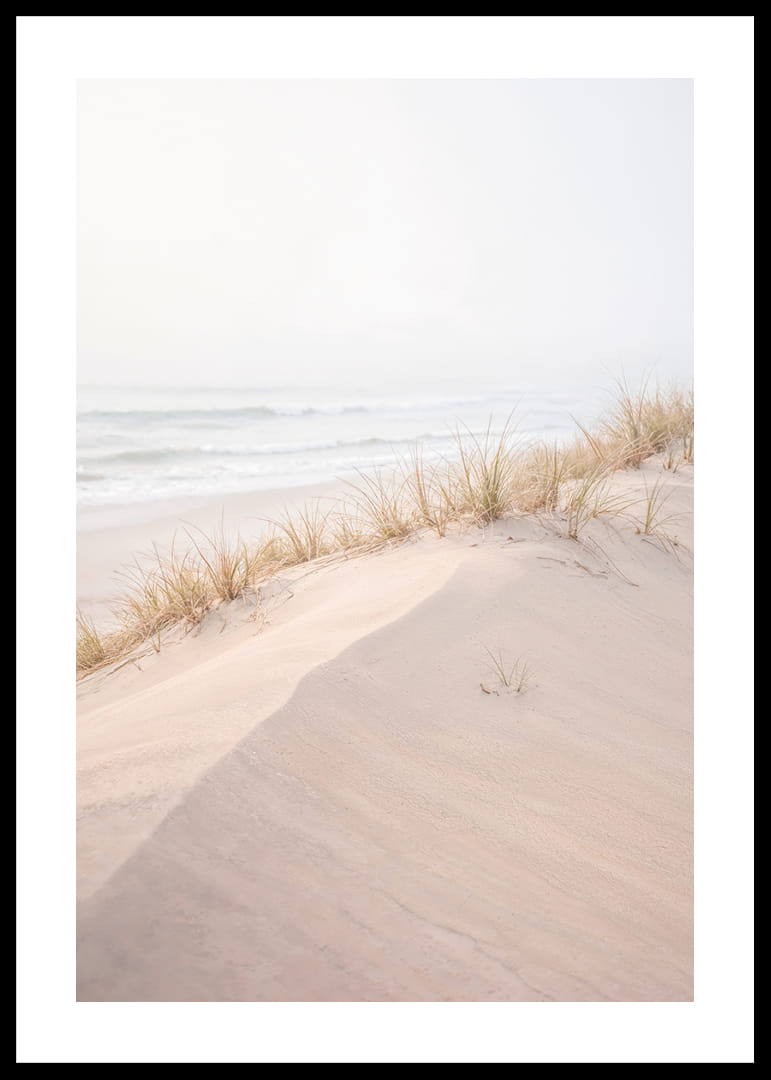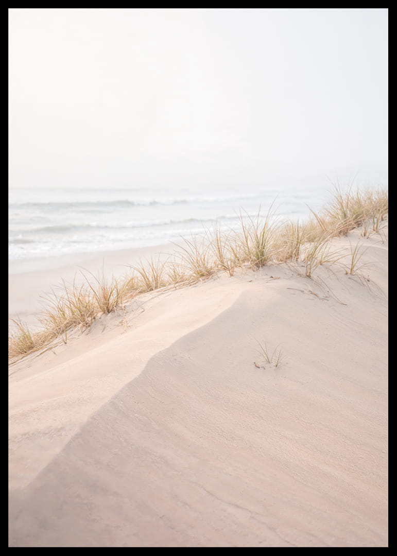 This poster captures a snapshot of a soft, pastel-colored beach, where tranquility spreads and the wind gently caresses the rolling dunes. The subtle colors of the sky and sea unite in a harmonious dance, creating a sense of freedom and peace. With this poster in your home, an atmosphere of relaxation and natural beauty spreads throughout the room, making every day a little more peaceful.