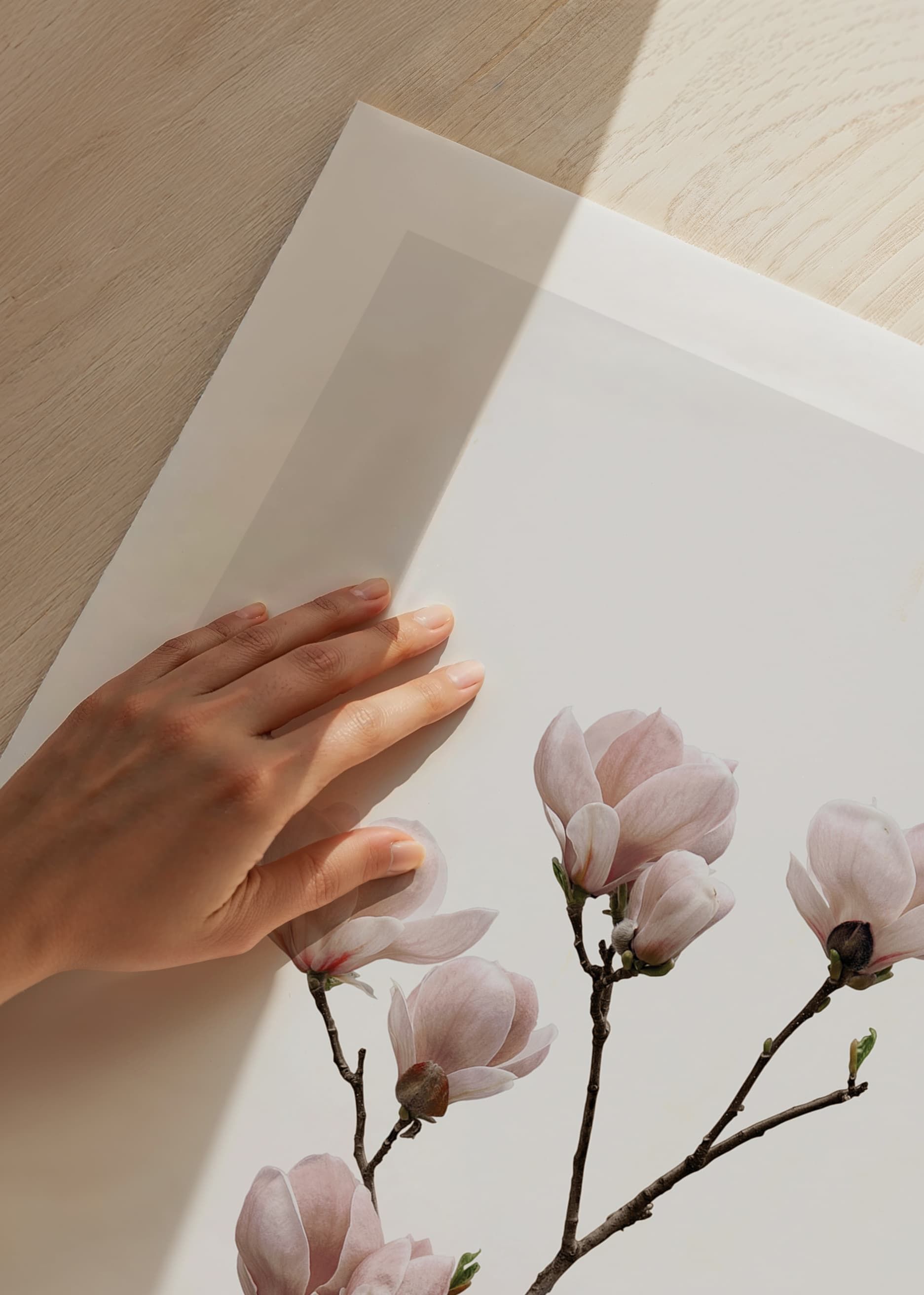 Poster from the botanical category with a beautiful photo on a branch with flowers from Magnolia.