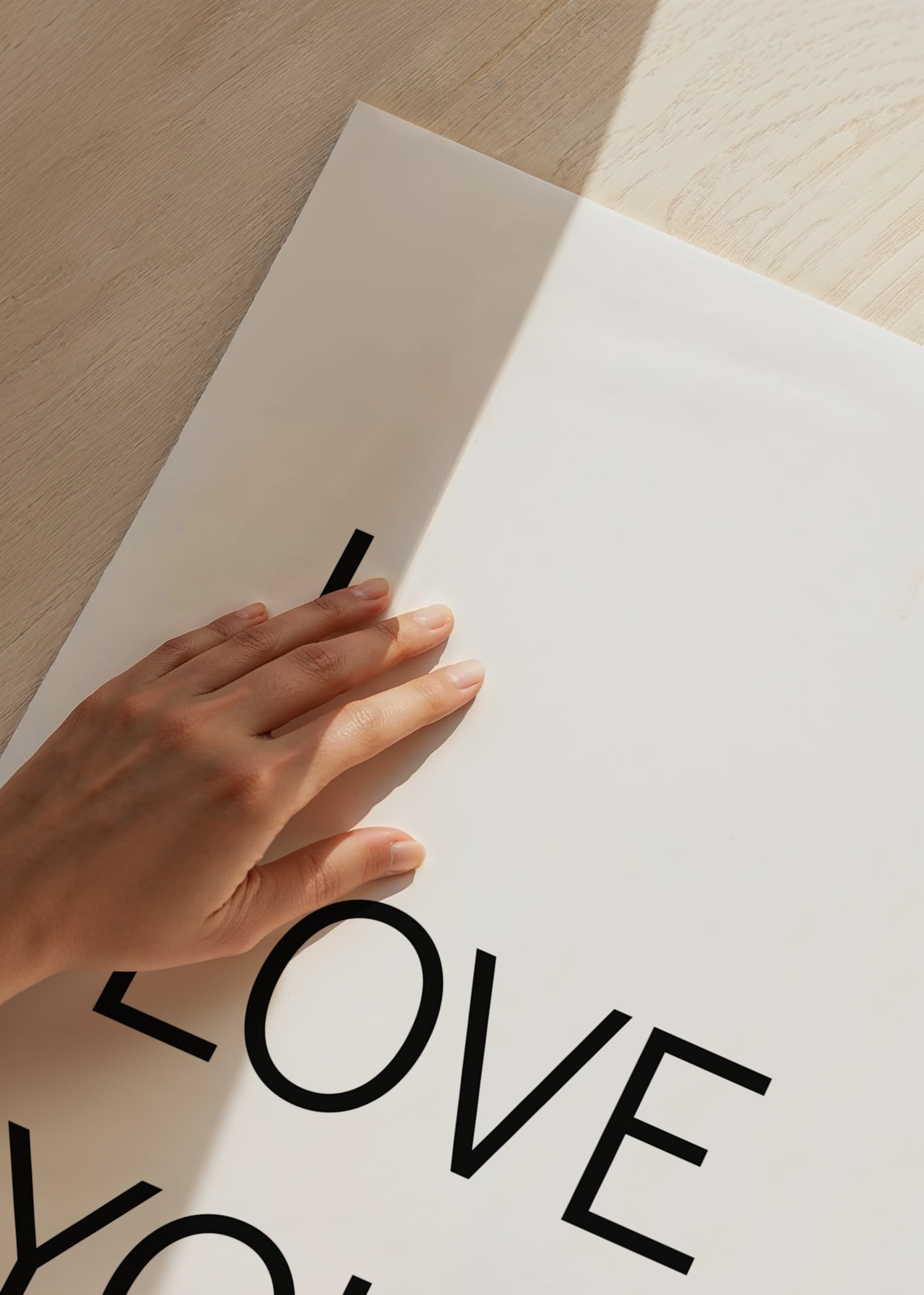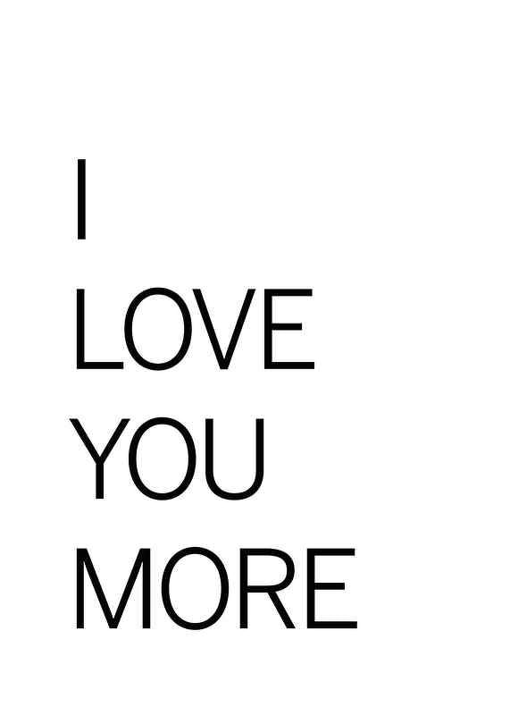 Large black capital letters form the quote "I LOVE YOU MORE" in an airy, minimalist font against a completely white background. The graphic design gives a modern and clean impression, while the message conveys closeness. A poster that adds personality to everything from the living room to the bedroom or hallway.