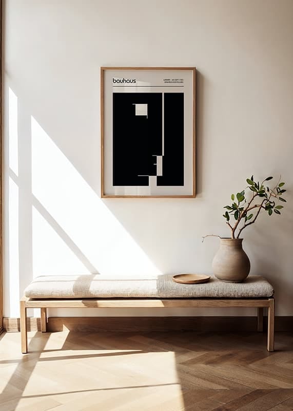 Poster Bauhaus No5 is a tribute to the groundbreaking Bauhaus movement and the influential German design school that set the standard for modern art, architecture and design. With its minimalist aesthetic, inspired by the creative Bauhaus era's focus on simplicity and balance, the poster will make a stylish and intellectual addition to your home. Perfect for those who appreciate design history and want to add a sense of timeless creativity to your interior.