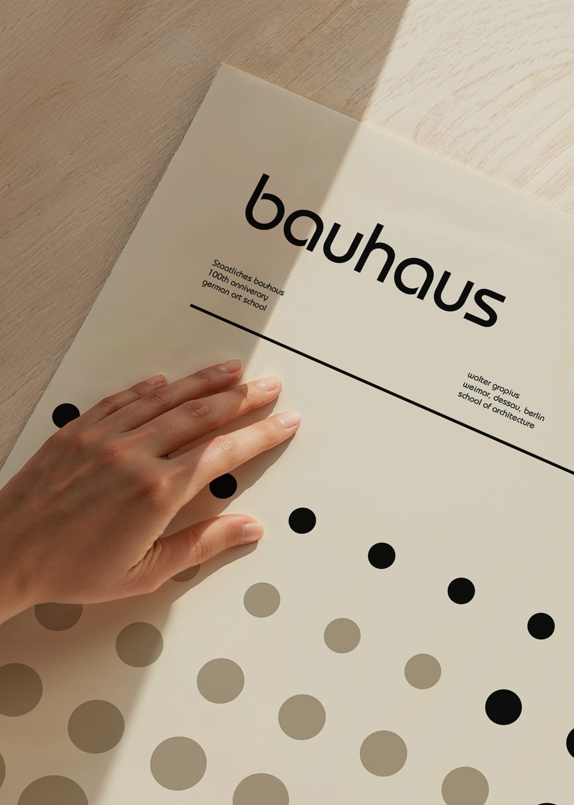 Poster Bauhaus No7 is a modern tribute to the influential Bauhaus movement – ​​the German design school that changed architecture, art and design during the 20th century. Inspired by the creative expression of the Bauhaus era, the poster combines clear geometries and a stylish design language. Perfect for those who want to elevate your home with timeless design history and give your interior an artistic, modern expression.