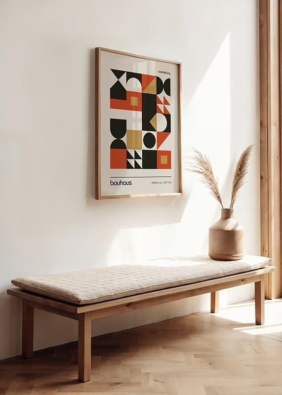 Bauhaus No12 is a tribute to the pioneering German design school Bauhaus, whose influence laid the foundation for modern art, architecture and design during the 20th century. The poster captures the essence of the Bauhaus movement's aesthetic values ​​with its balanced shapes, minimalist expression and sense of creativity and structure. A timeless piece of art for those who want to add visual balance, historical weight and stylish design inspired by an iconic era to their home.