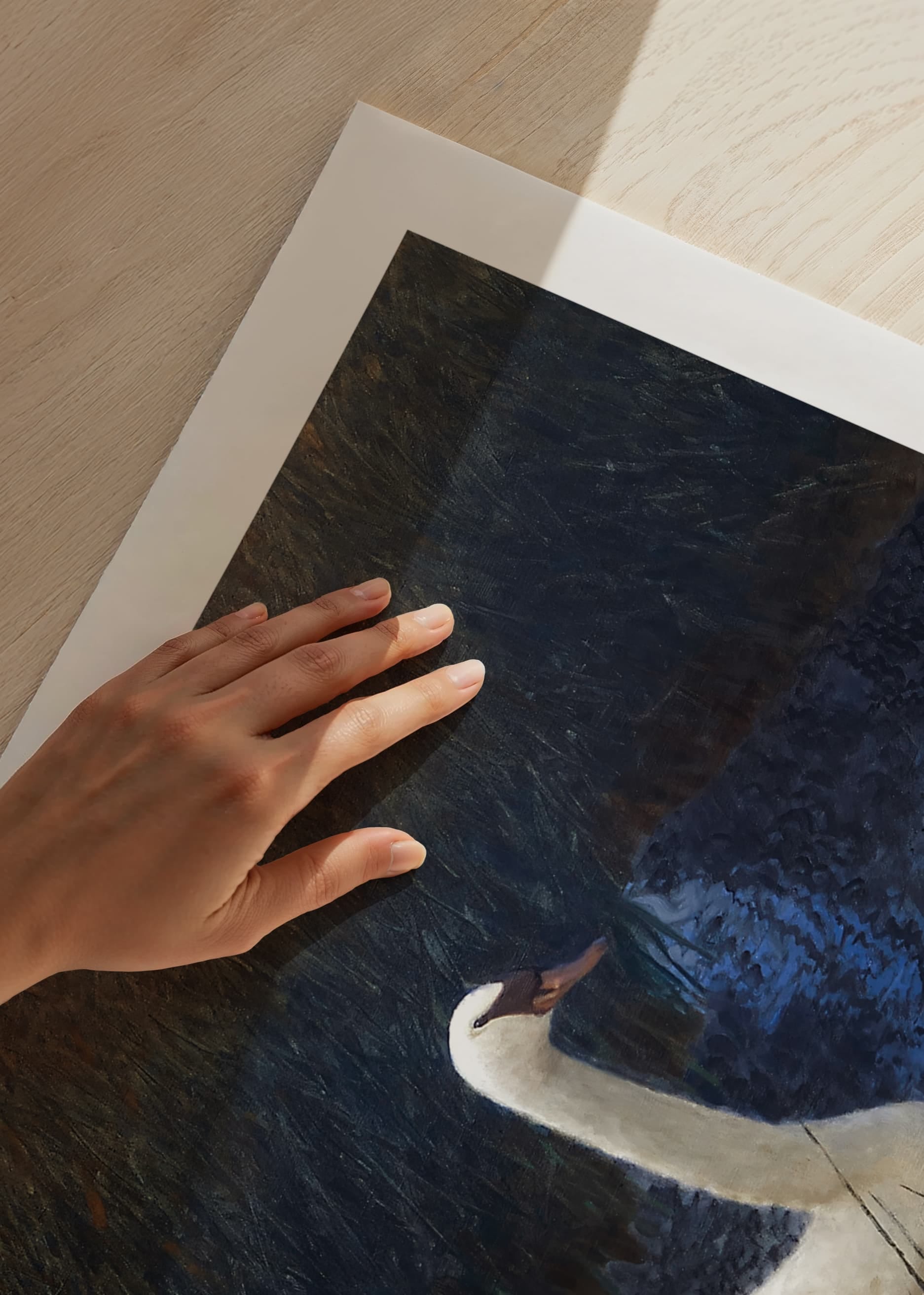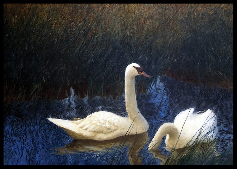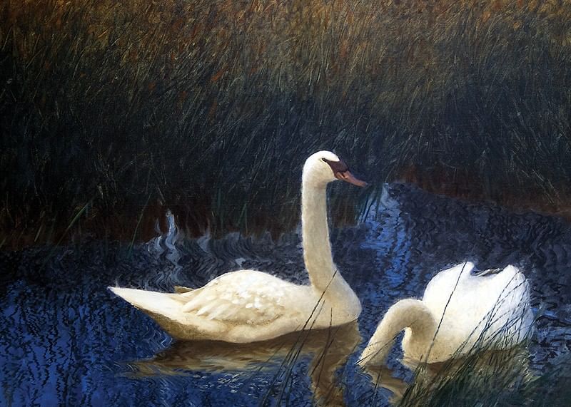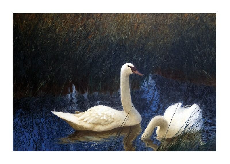 Poster with the painting Swans in Reeds by the Swedish nature painter Bruno Liljefors from the year 1907. Liljefors is best known for his motifs with animals, often in dramatic situations.