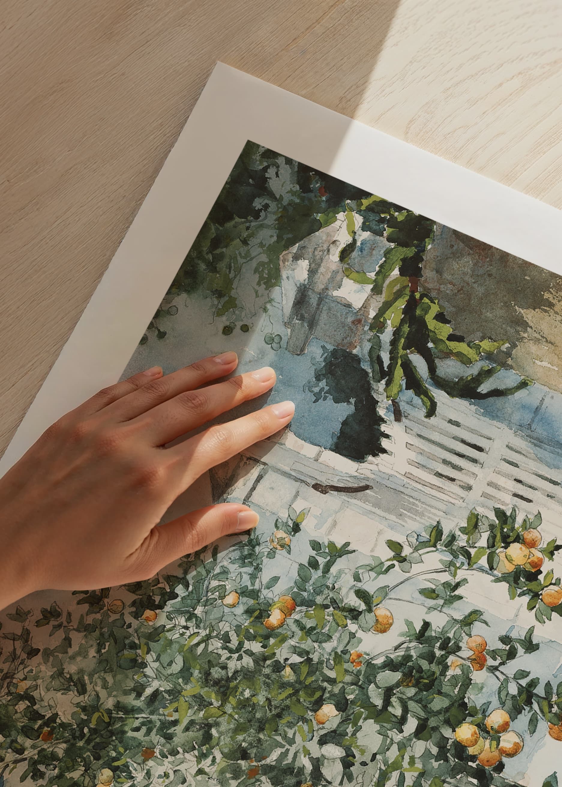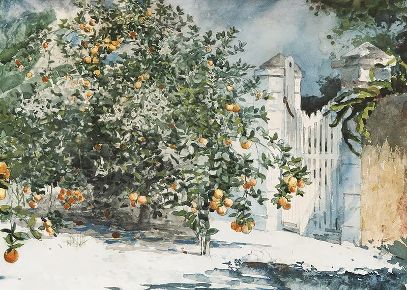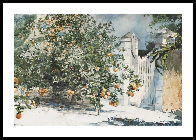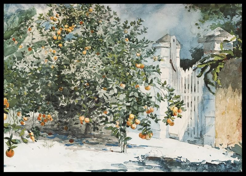 Poster with the painting "Orange Trees And Gate" by the American artist Winslow Homer from the year 1885.