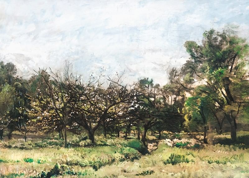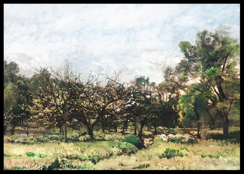 Poster with the painting "Boomgaard" by the French artist Charles-François Daubigny from the years 1865-1869.