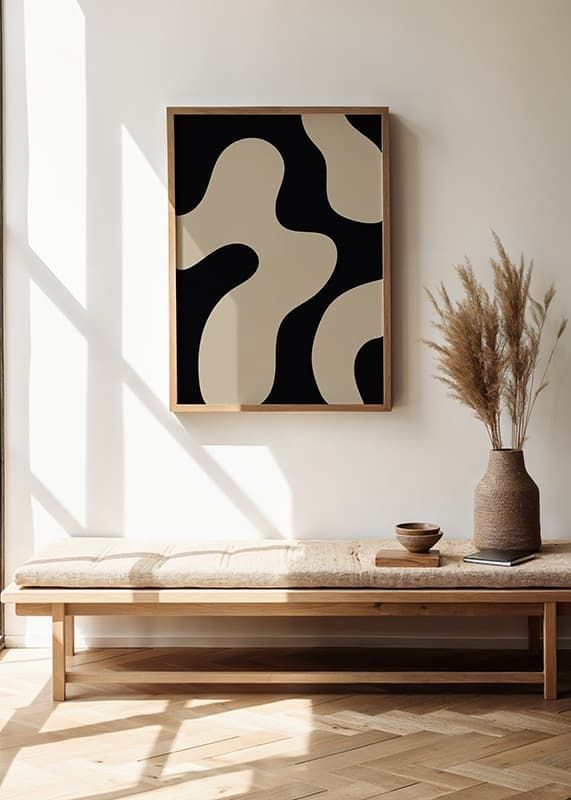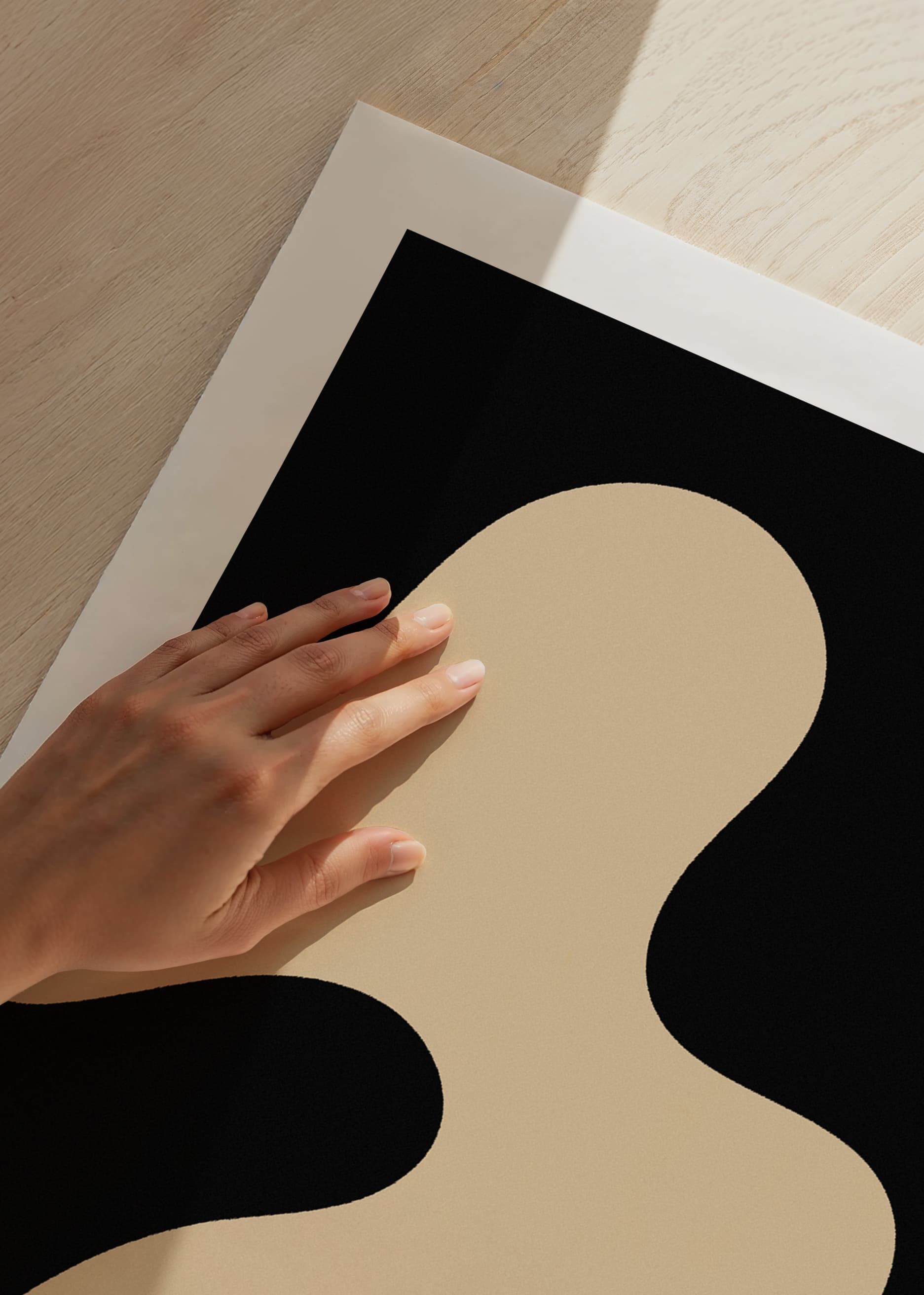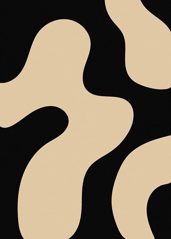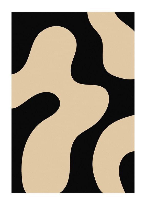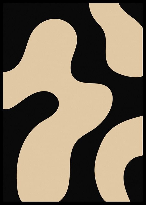Organic shapes in a soft undulating pattern spread out in beige against a black background. The abstract and minimalist lines create a graphic feel that gives a modern expression. This poster fits into both the living room and the study and contributes a discreet and stylish accent.