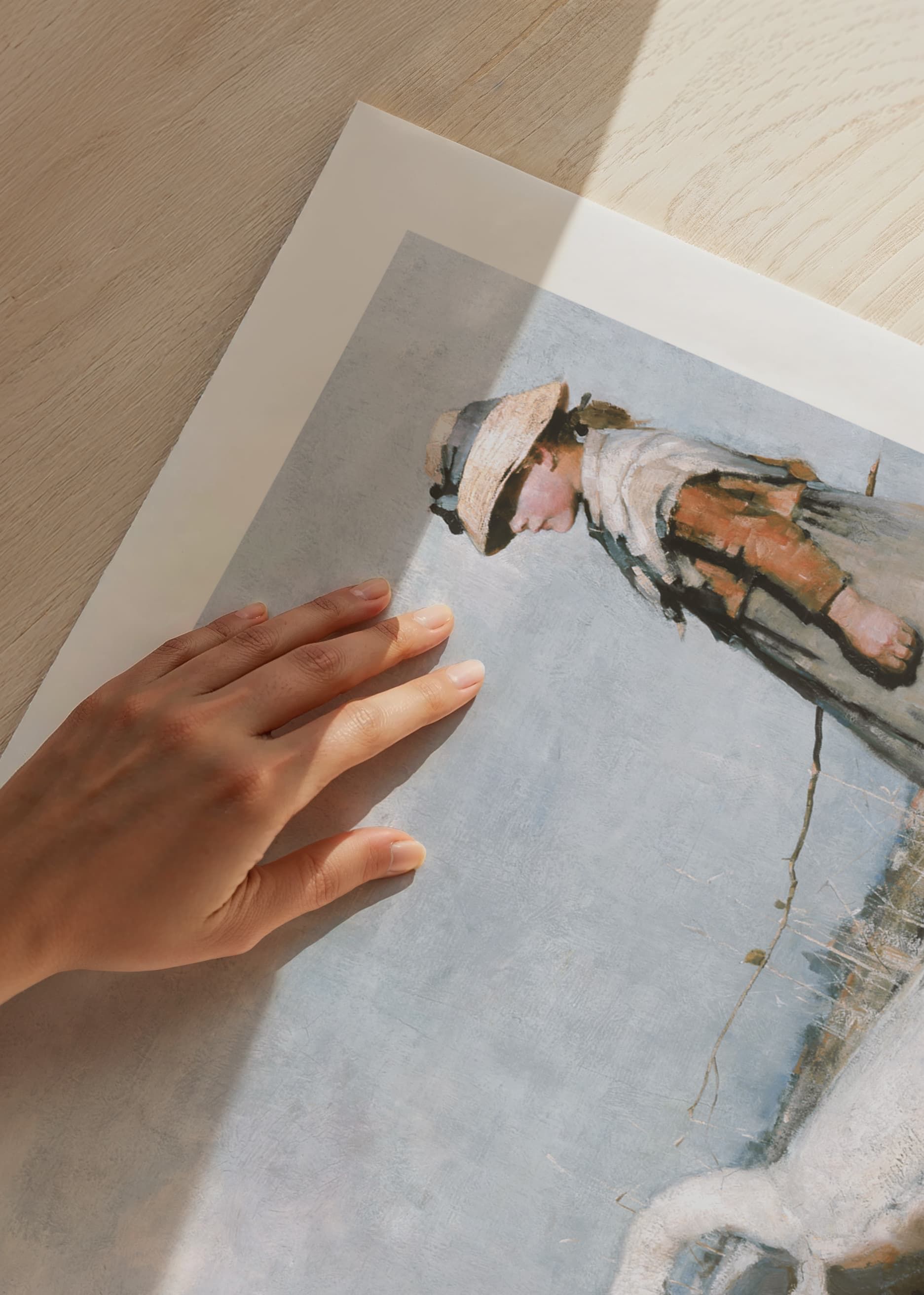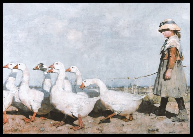 Poster from the category of historical art with the painting "To Pastures New" by the Scottish artist James Guthrie from the year 1883.