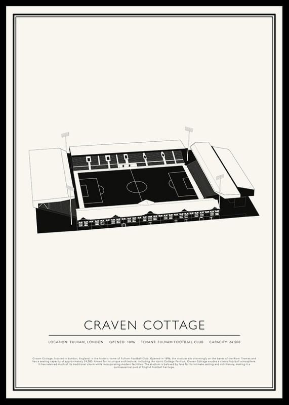 Craven Cottage, located in London, England, is the historic home of Fulham Football Club. Opened in 1896, the stadium sits charmingly on the banks of the River Thames and has a seating capacity of approximately 24,500. Known for its unique architecture, including the iconic Cottage Pavilion, Craven Cottage exudes a classic football atmosphere. It has retained much of its traditional charm while incorporating modern facilities. The stadium is beloved by fans for its intimate setting and rich history, making it a quintessential part of English football heritage.