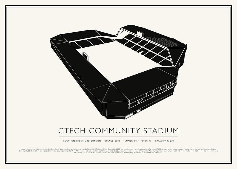 Gtech Community Stadium, located in Brentford, West London, is the home ground of Brentford Football Club. Opened in 2020, the stadium has a seating capacity of around 17,250. Known for its modern design and state-of-the-art facilities, the Gtech Community Stadium offers an exceptional match-day experience for fans. The venue features excellent sightlines, advanced acoustics, and numerous hospitality suites. As a multi-purpose stadium, it also hosts rugby matches and other events, showcasing its versatility. The stadium is a central hub for the local community, symbolizing Brentford FC's growth and ambitions.