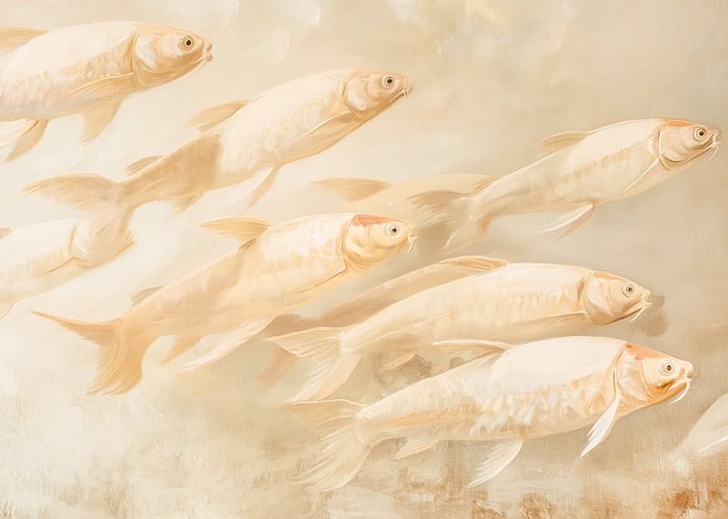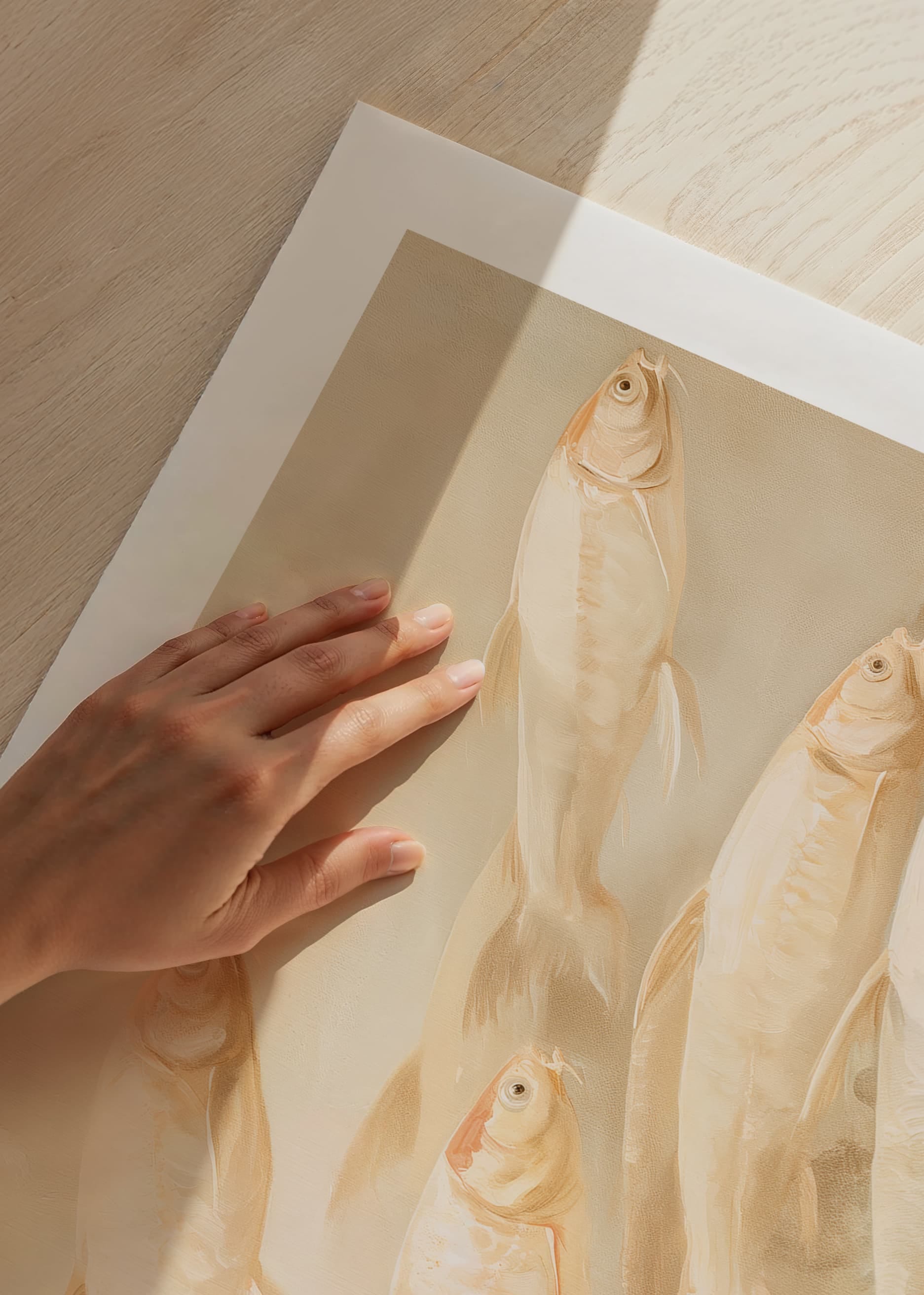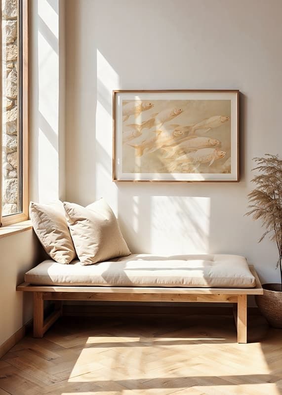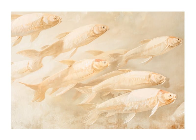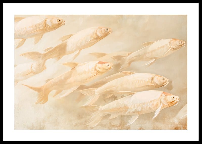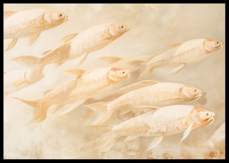 Let this dreamy poster fill your home with peace and balance. The soft, golden tones and the harmonious movement of the fish create a sense of tranquility and freedom. Perfect for those who love the beauty of nature and want to add a sophisticated, meditative touch to your interior. A timeless artistic detail for every room