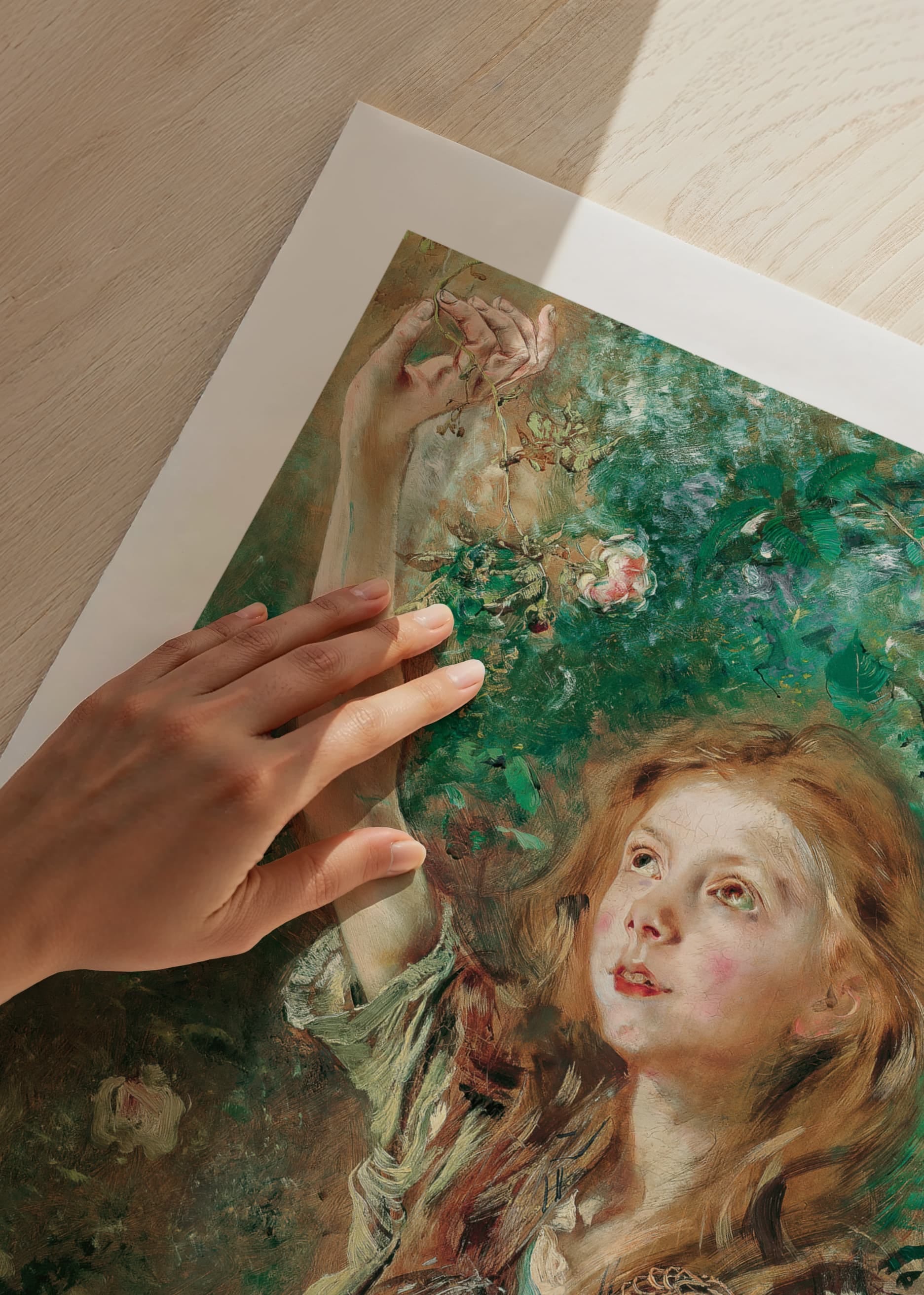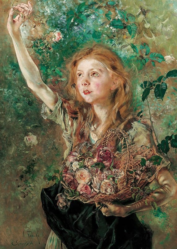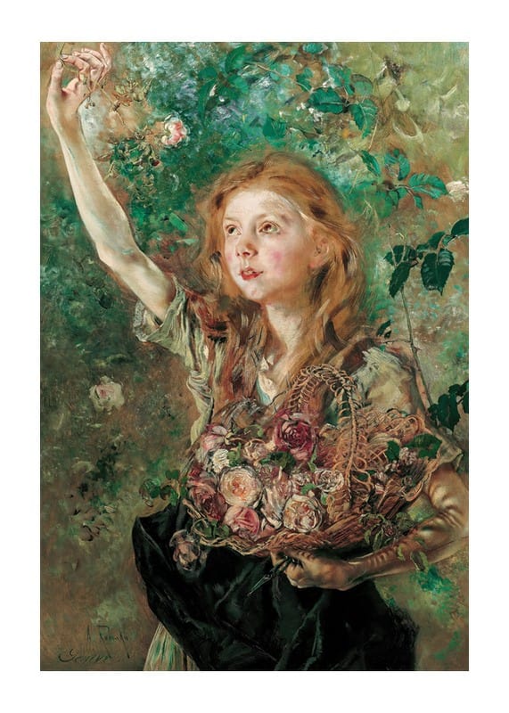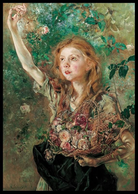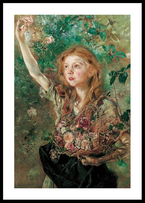 Poster from the category of famous artists with the painting "Die Rosenpflückerin" by the Austrian artist Anton Romako from the years 1882-1884.