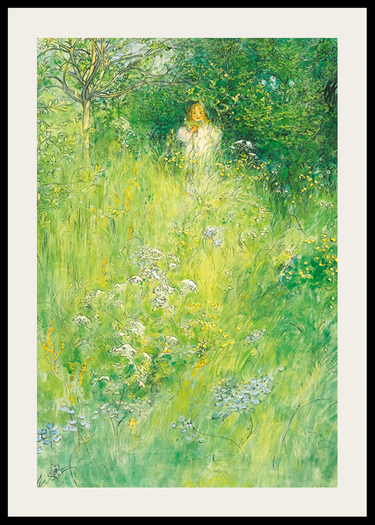 Poster from the famous artists category with the painting "A Fairy (Kersti In The Meadow)" by the Swedish artist Carl Larsson from the year 1899.