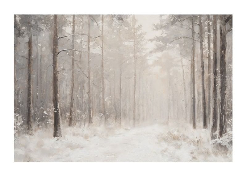 Experience the stillness of nature with this poster that captures a peaceful winter forest where a snow-covered path winds through majestic trees. The soft tones and the misty light create a dreamlike atmosphere that conveys calm and harmony. Perfect as a decoration to create a sense of tranquility or as a gift for nature lovers. Let this poster become an elegant addition to your home