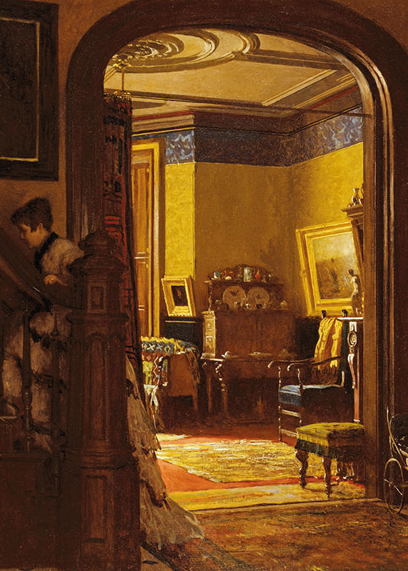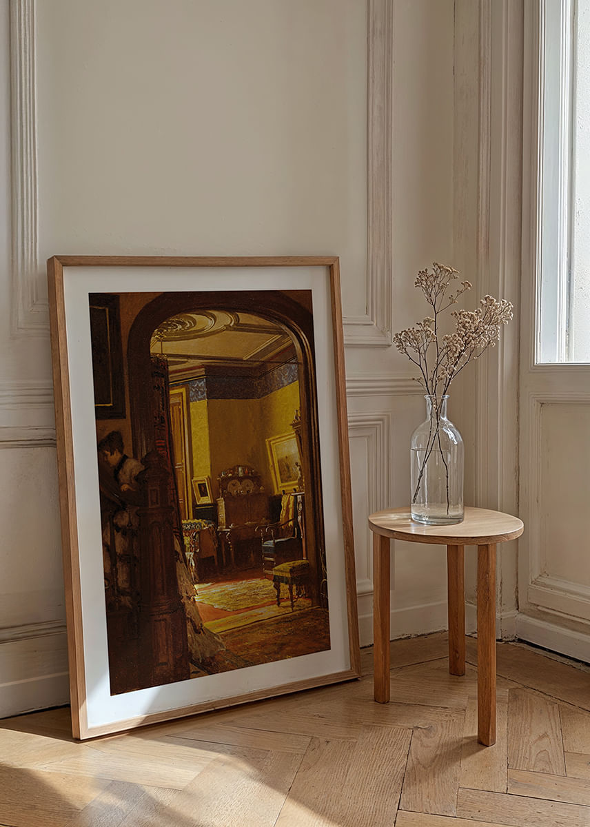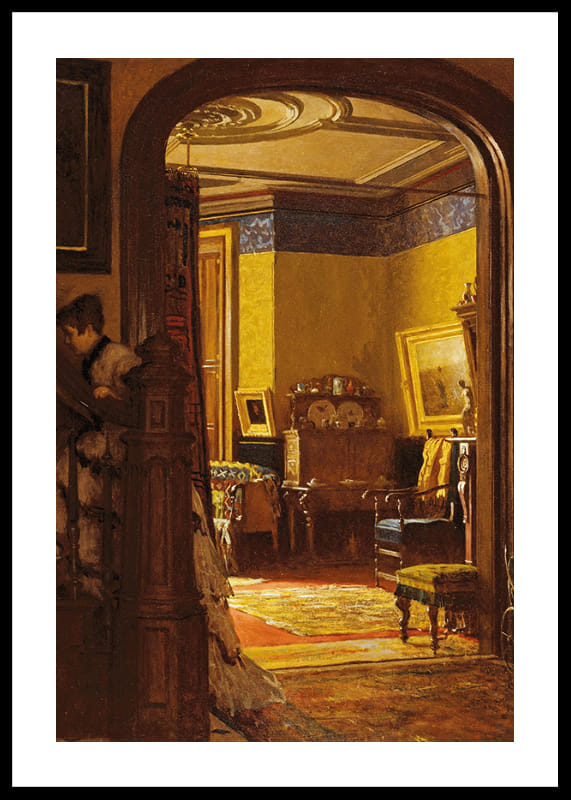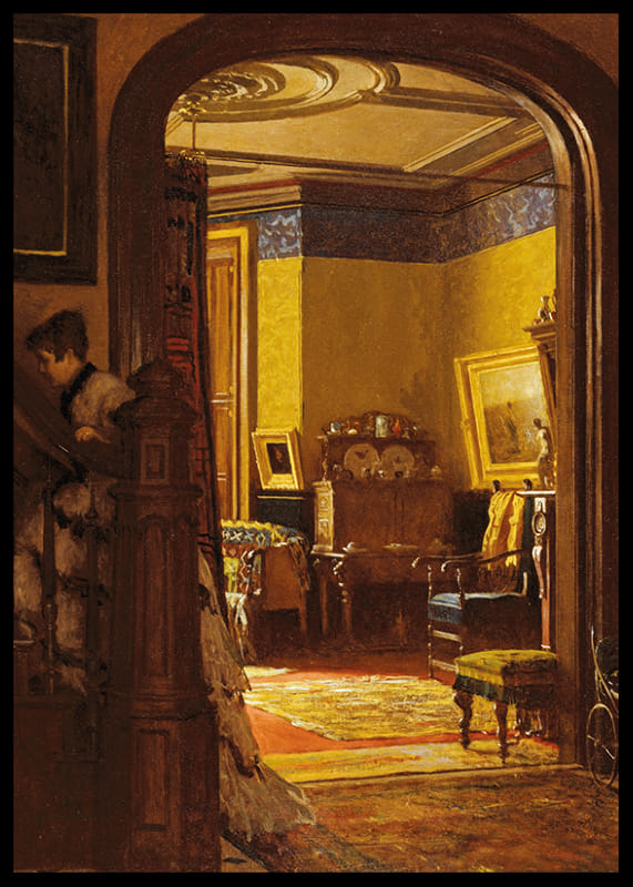 Poster with the painting "Not At Home" by the American artist Eastman Johnson.