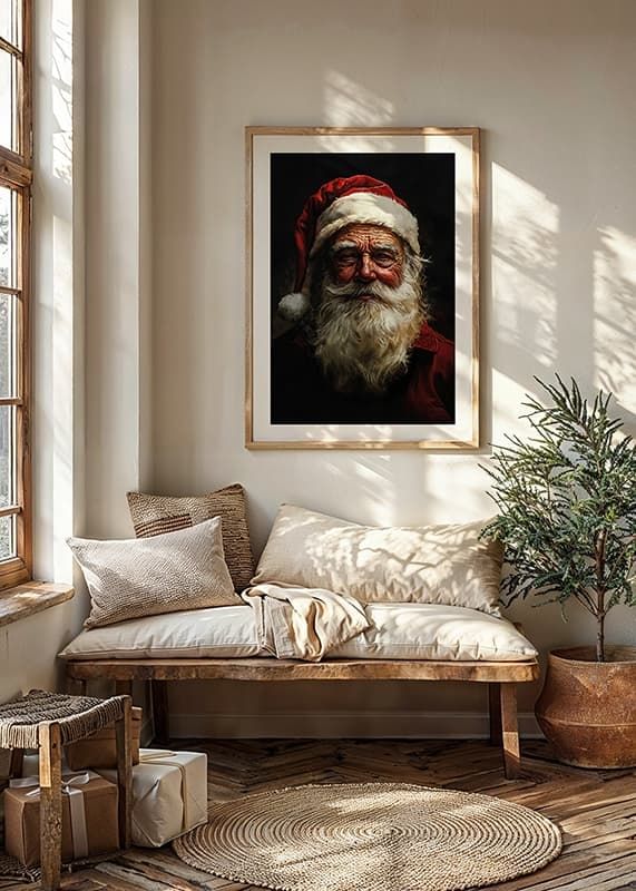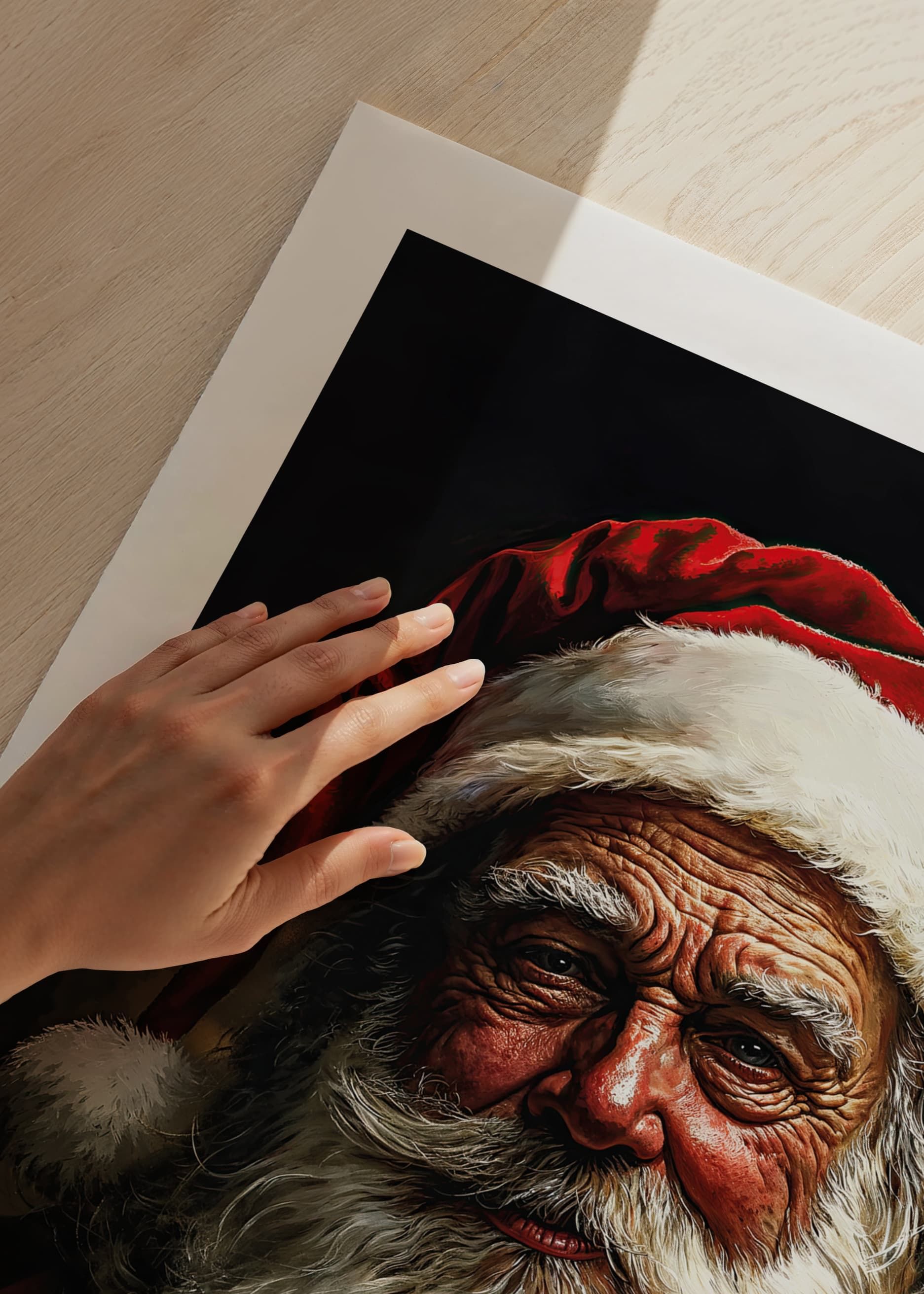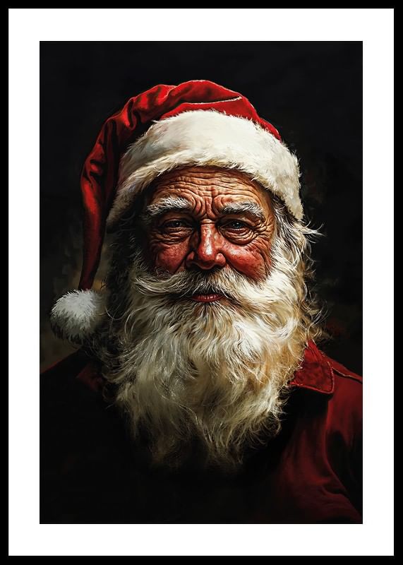 Capture the magic of Christmas with this beautiful poster of a classic Santa, whose warm smile and sparkling eyes spread a sense of genuine Christmas cheer. The details of the wrinkled face and soft beard create an image of wisdom and warmth, perfect for decorating your home during the winter months. A reminder of the traditions of Christmas and the charm of Santa, ready to spread happiness to all who see it.