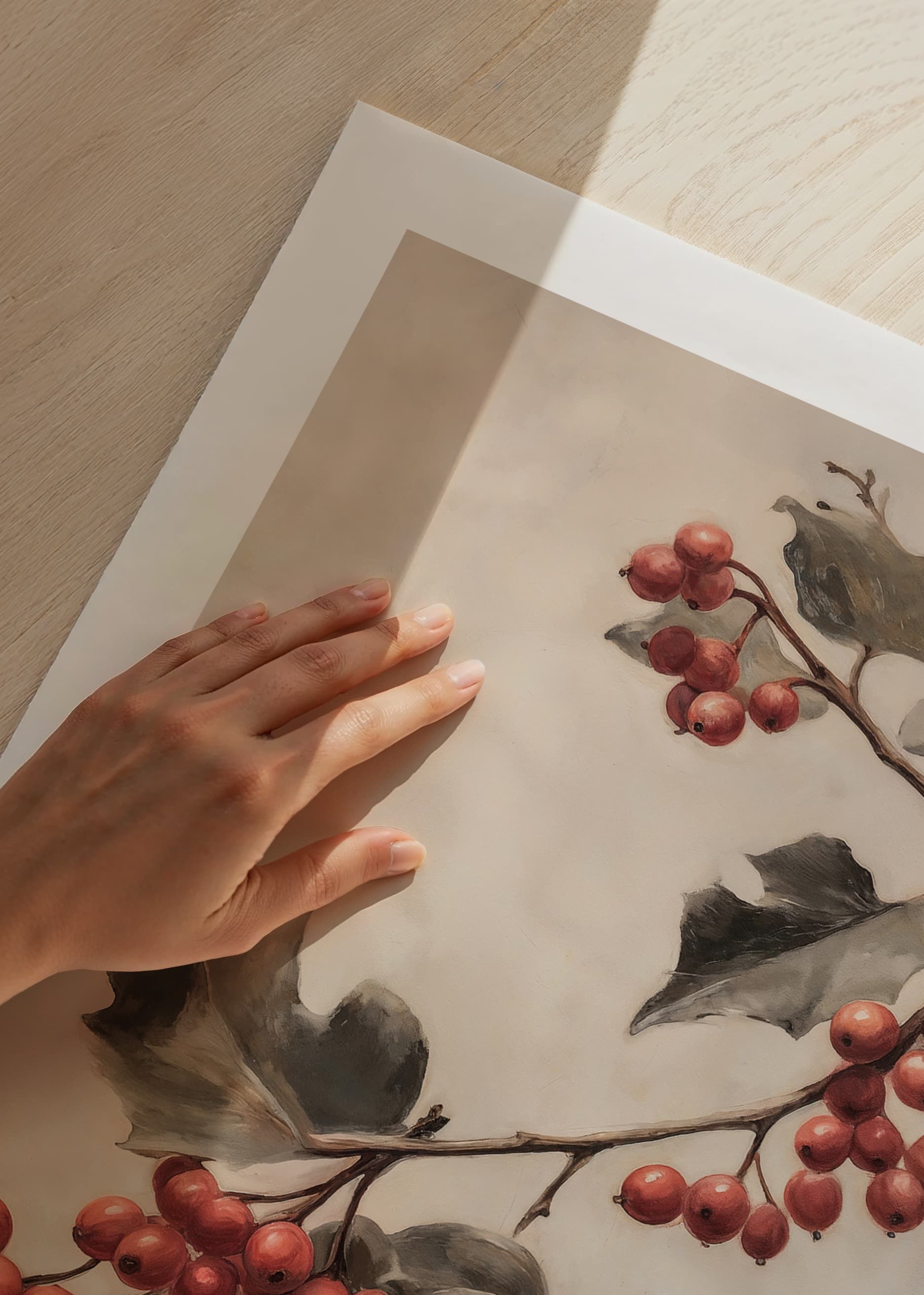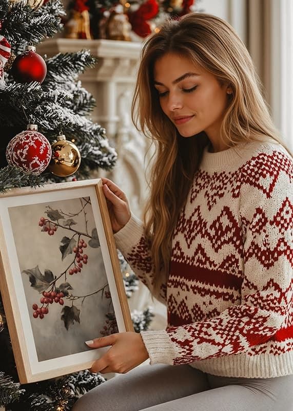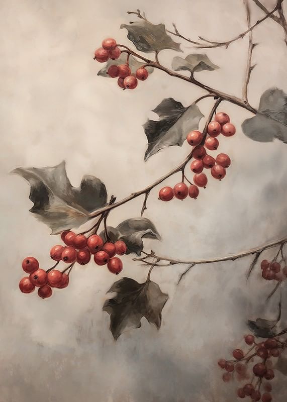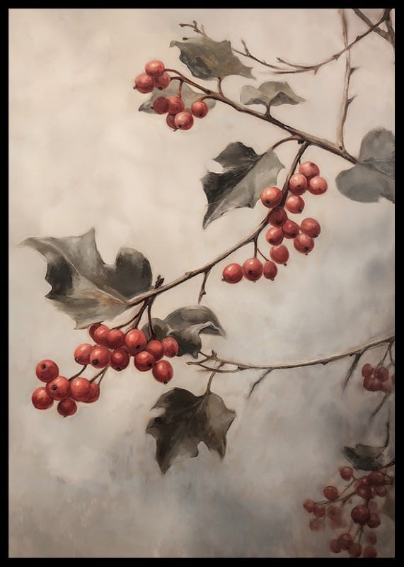 Bring the elegance of nature into your home with this stylish winter poster! The image shows beautiful twigs with deep red berries and green leaves that capture the classic colors of Christmas. Against a soft and misty background, the branches appear in a way that creates calm and harmony. This poster is perfect for those who want to add a subtle and sophisticated Christmas feel, inspired by the natural beauty of winter.