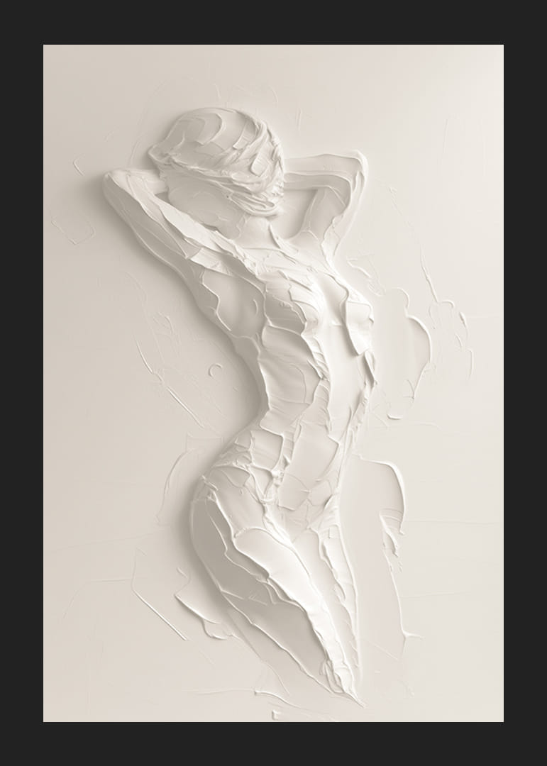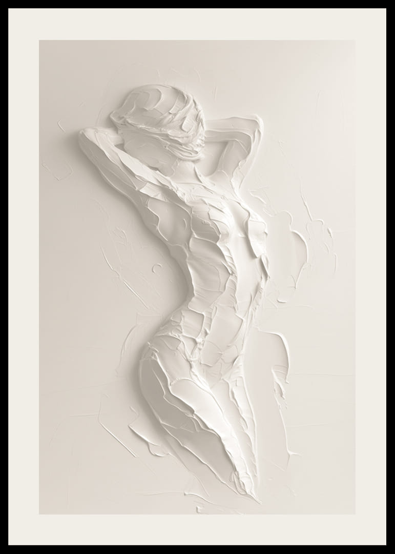 An elegant poster that captures the natural beauty of the body through soft, textured brushstrokes. The minimalist, monochrome style creates a harmonious balance between form and light, giving a sense of movement and lightness.