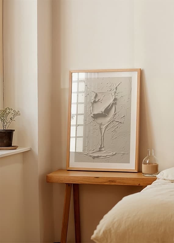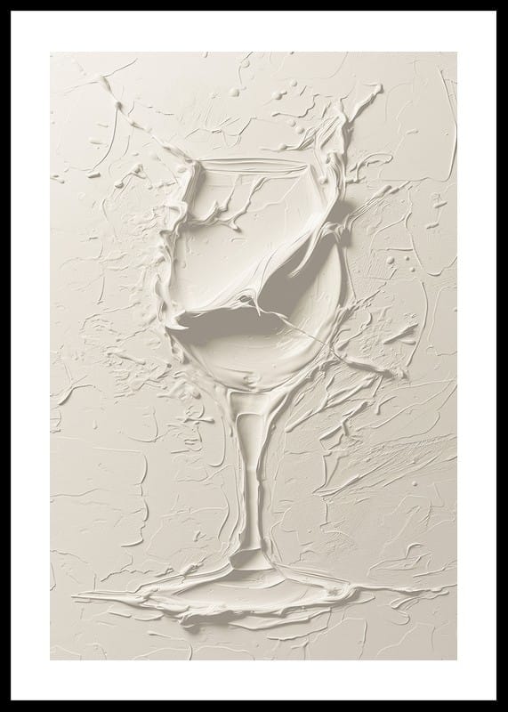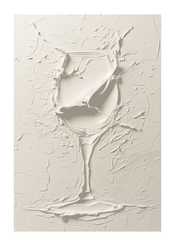 A stylish poster that captures the elegance of a wine glass with textured, sweeping brushstrokes in a soft, monochrome palette. The subtle details create a sense of movement and sophistication, perfect for giving your home, kitchen or wine room a modern and exclusive touch.