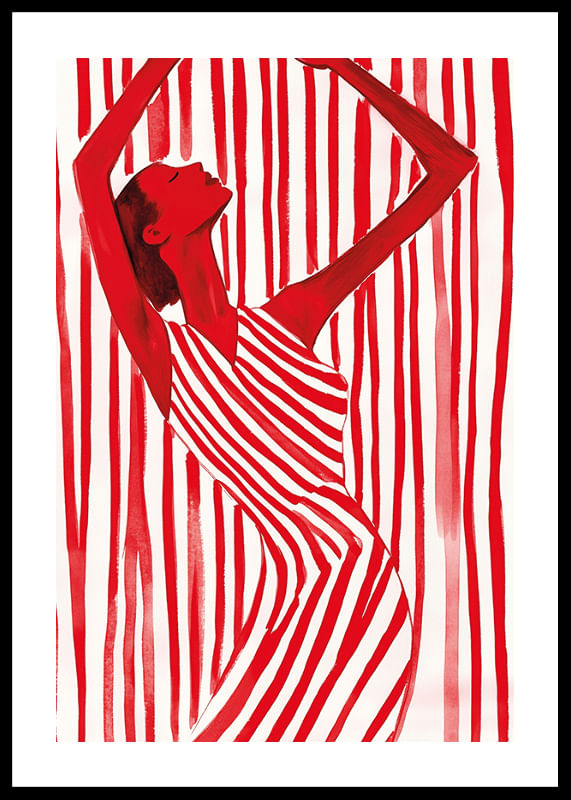 Explore a world of dreamy elegance with this dynamic poster. This captivating image combines elegant design and powerful movement, where red and white stripes dance with grace and energy. Perfect for enhancing any room with a sense of life and style.