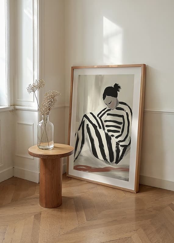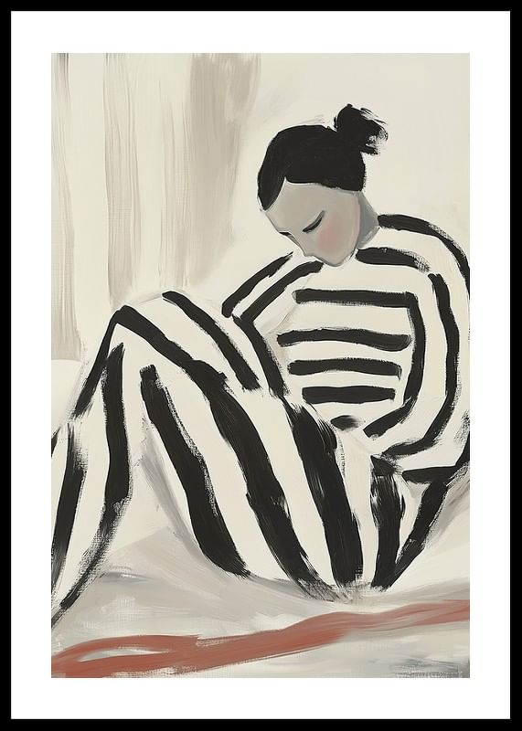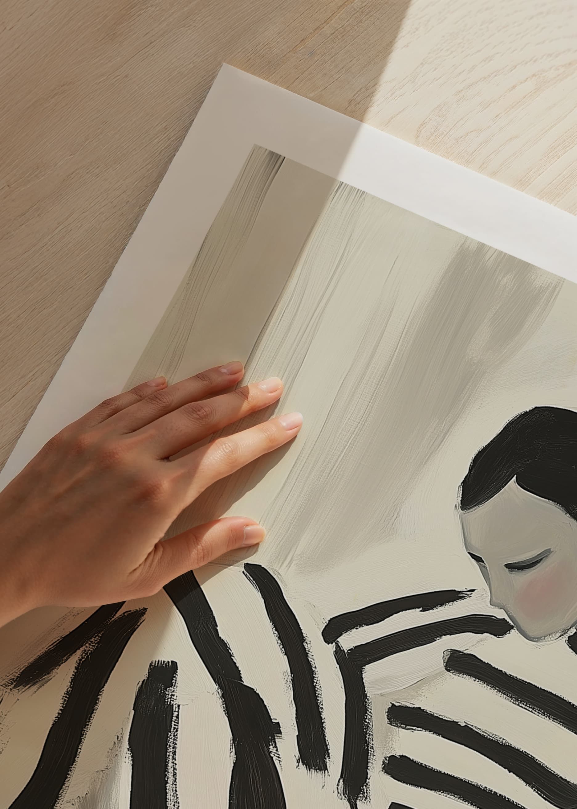 Discover modern art with this captivating poster that combines minimalism and expressiveness. The bold, black and white lines against a soft background create a visual balance that draws the viewer into a world of introspection and tranquility.